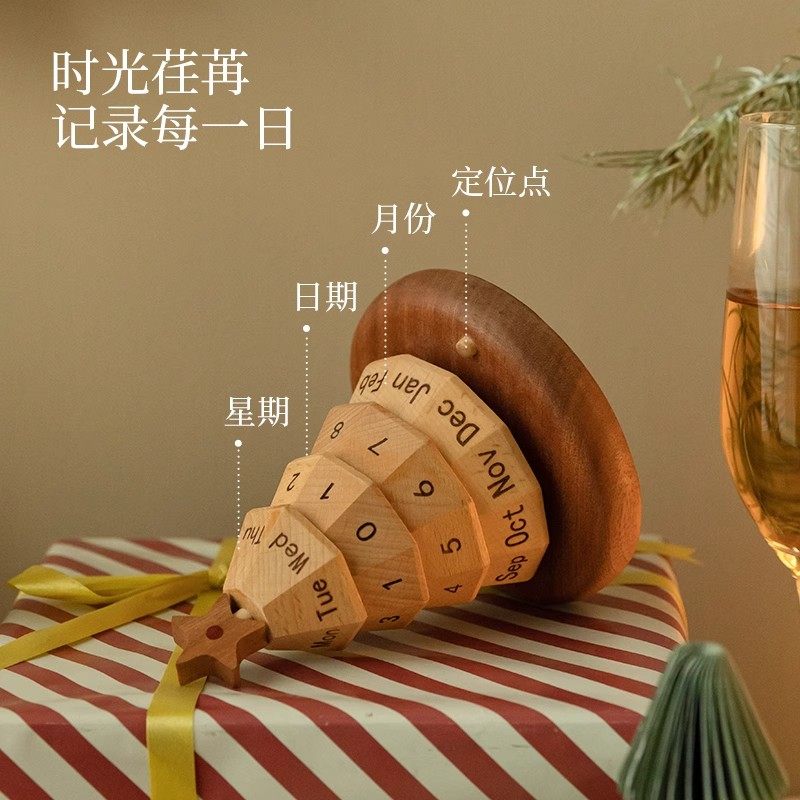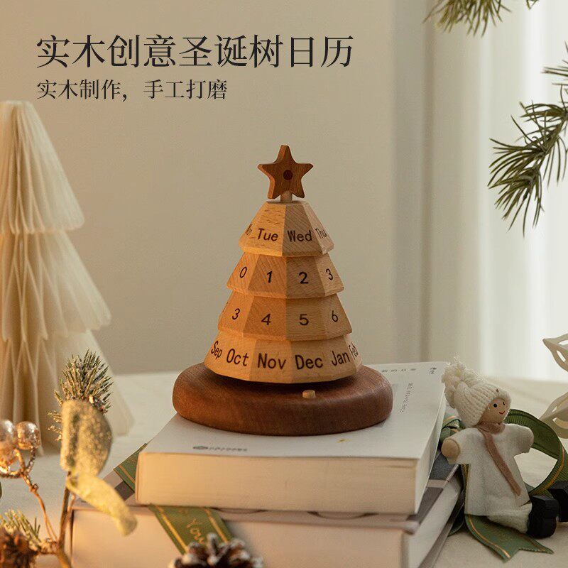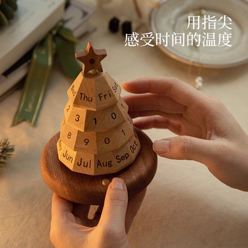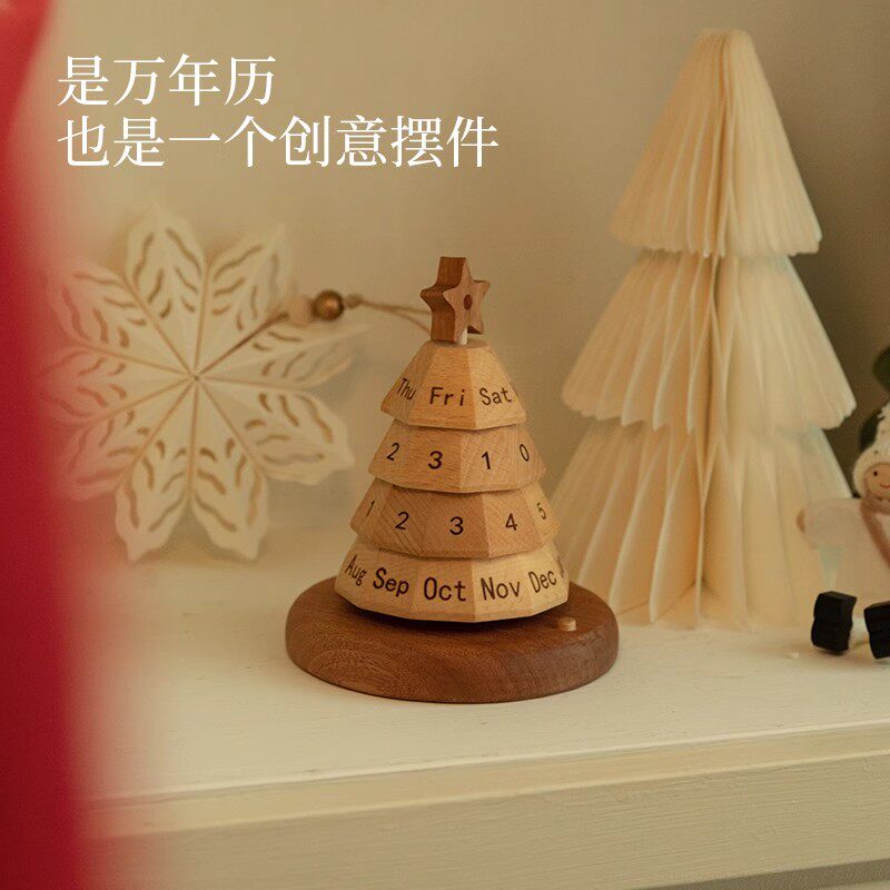 圣诞礼物万年历2026新款 饰摆件 高颜值木圣诞树日历家用桌面创意装