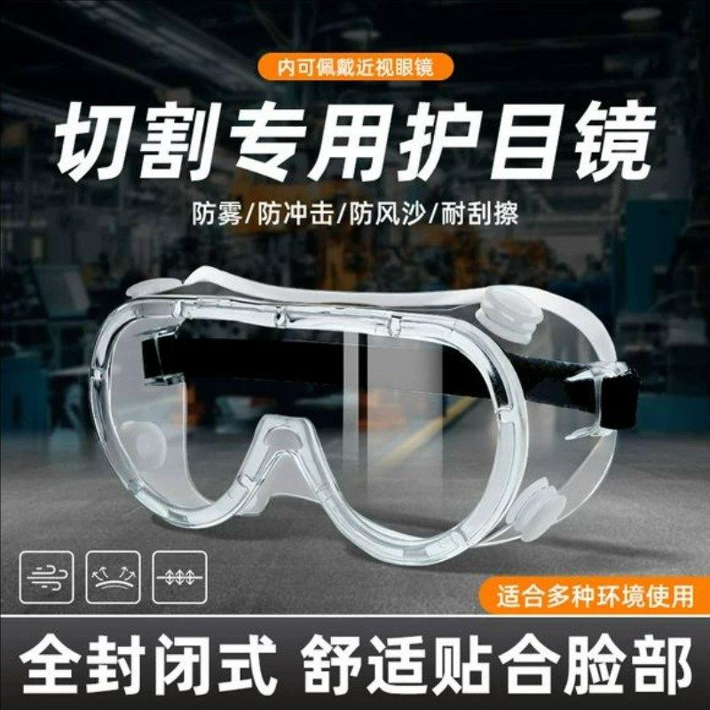 护目镜劳保防飞溅防灰尘不起雾可戴眼镜工业切割防风沙全封闭防护