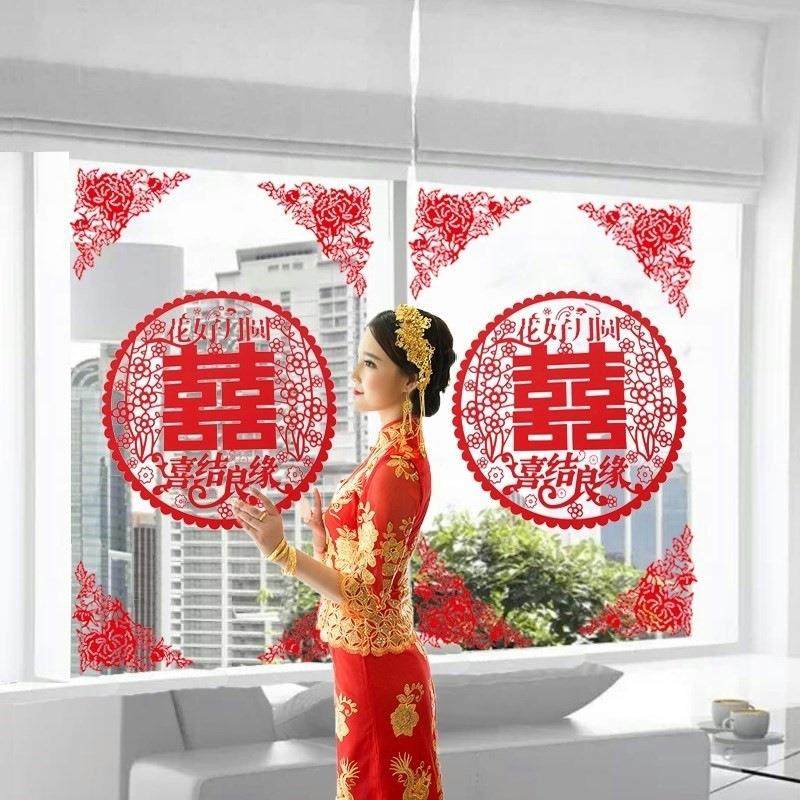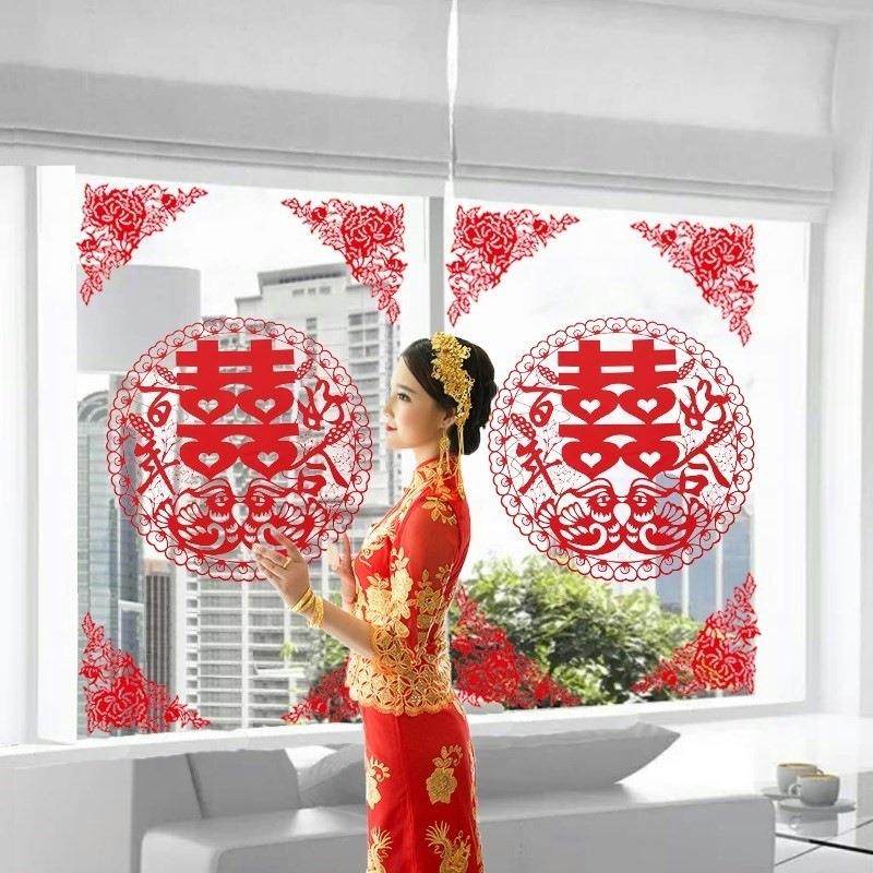 A6L门窗玻璃门客厅窗户贴角花温馨婚礼布置喜字结婚贴纸婚礼喜庆