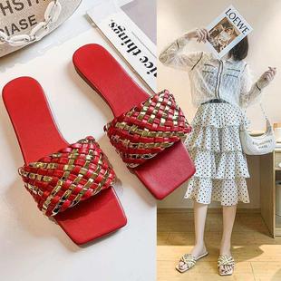 女夏季 温柔ins厚底拖鞋 外穿防滑沙滩一字拖 法式 波西米亚海岛风