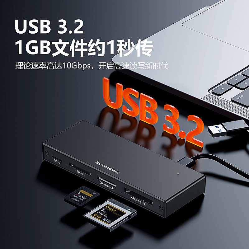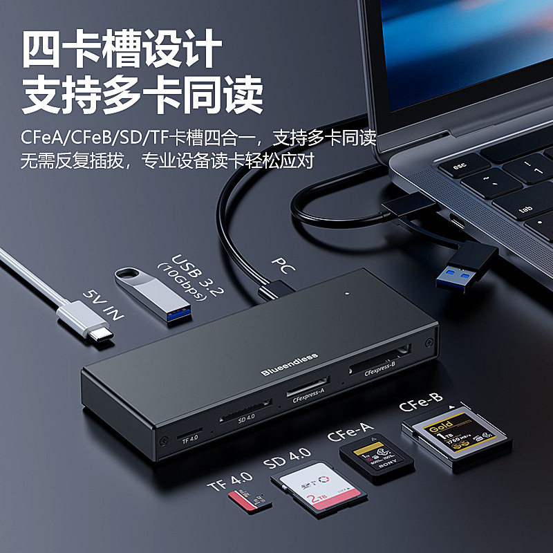 TF内存卡五口USB3.2高速10Gbps读卡器5V供电 SD4.0 蓝硕CFeA CFeB