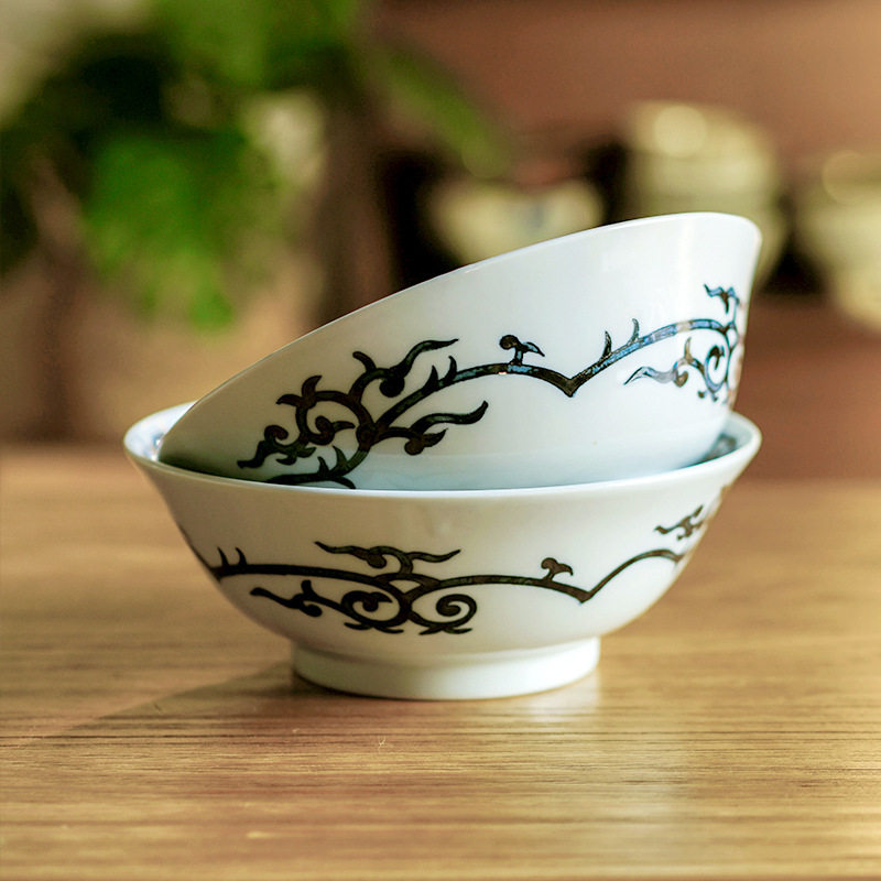 日本进口美浓烧陶瓷餐具汤碗高级感大碗日式 轻奢复古花卉面碗家用
