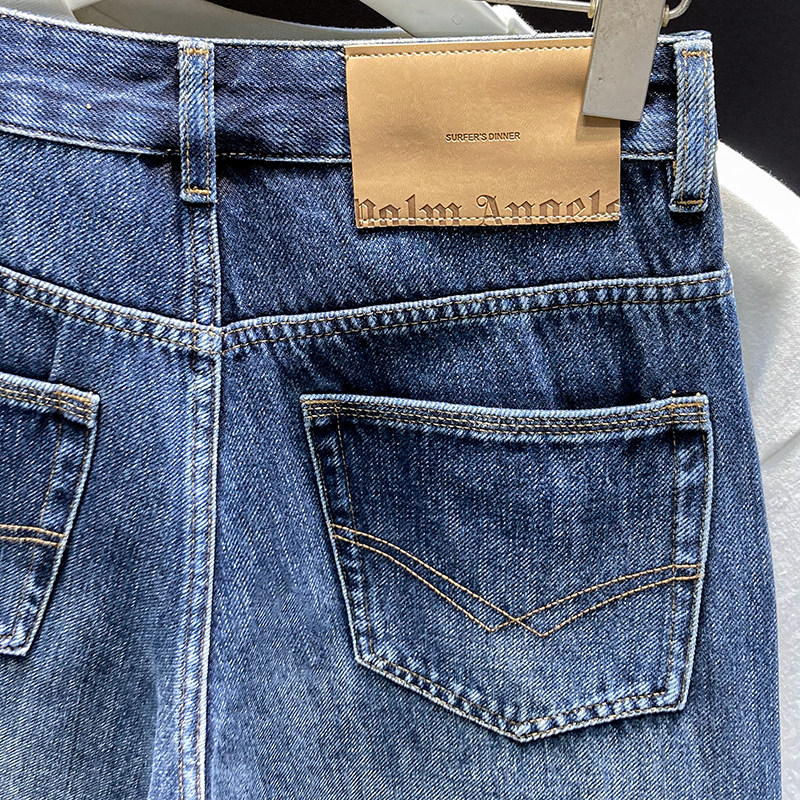 全棉高个子长裤 pusumede黑色阔腿牛仔裤 女复古宽松直筒高腰休闲裤