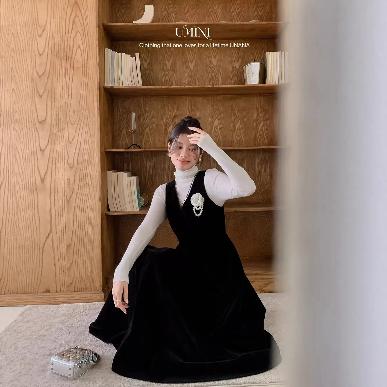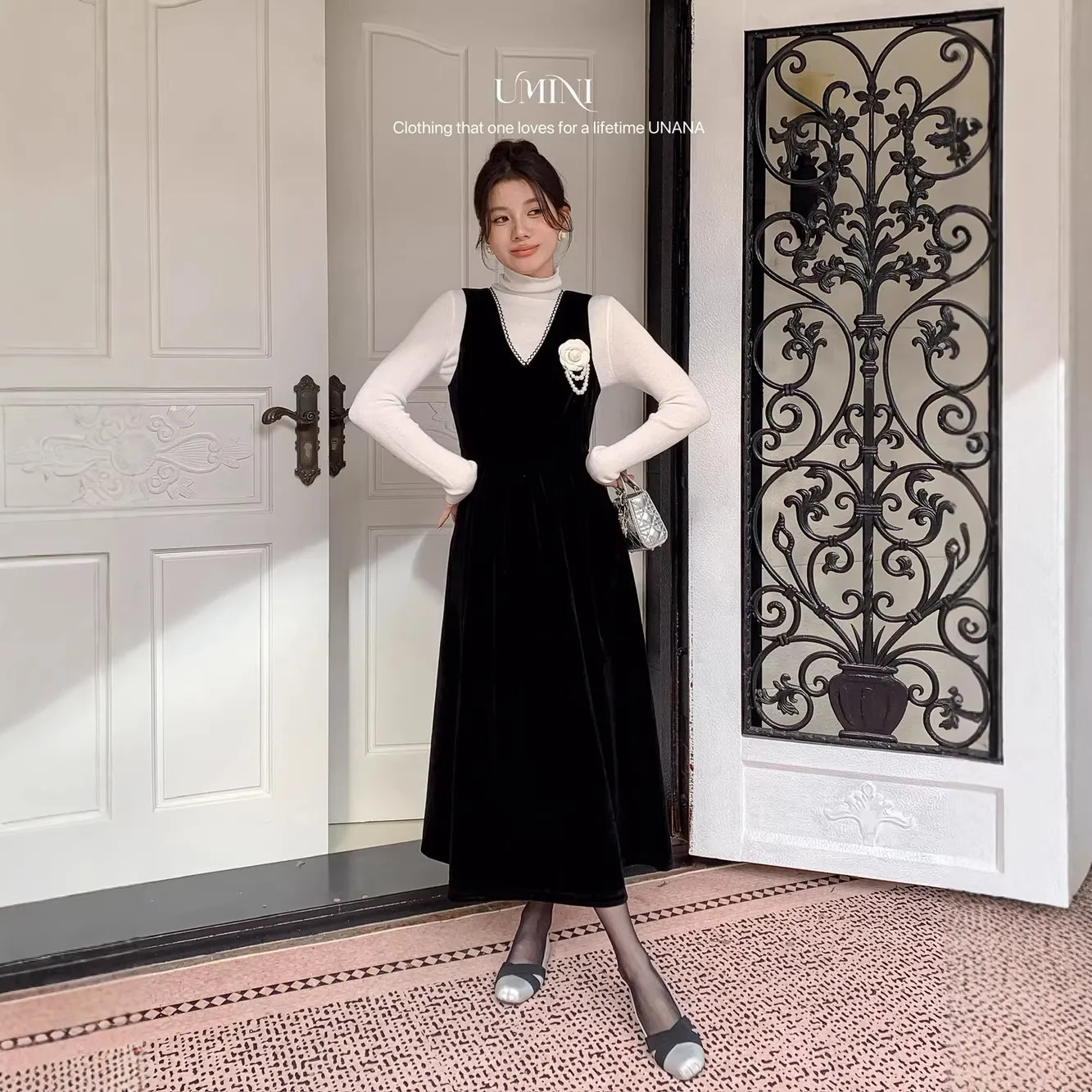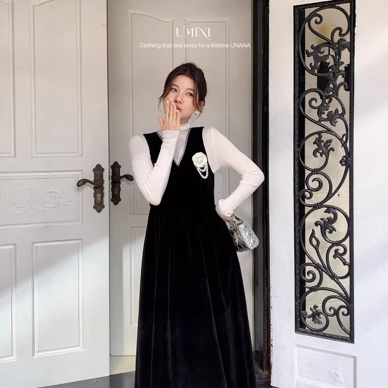 山茶花胸针连衣裙 MINI圣诞年会系列法式 UNANA新品 F5613十三行U