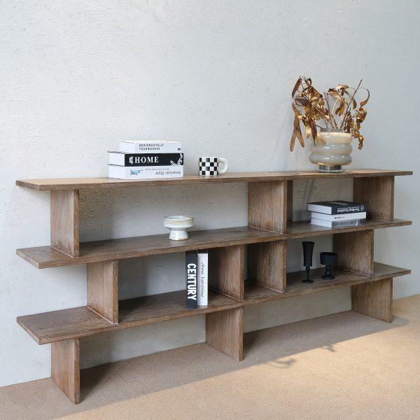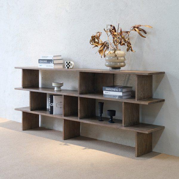 木有作为侘寂复古拉丝中古风置物架格子镂空书架杯架