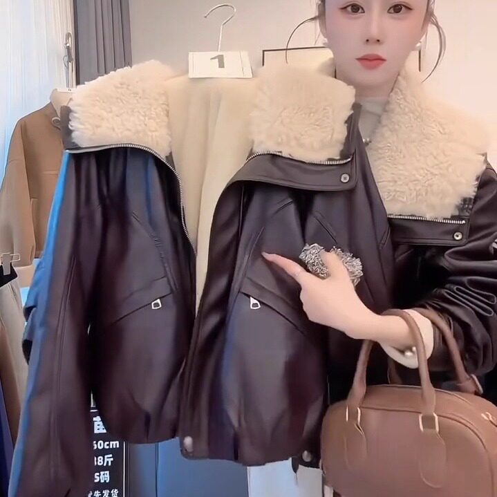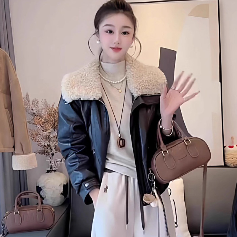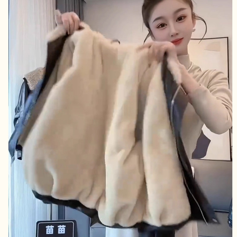 女士专属海宁2025春秋冬季 显瘦百搭上衣 皮衣外套女加绒加厚新款