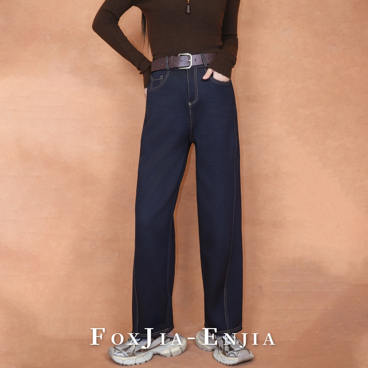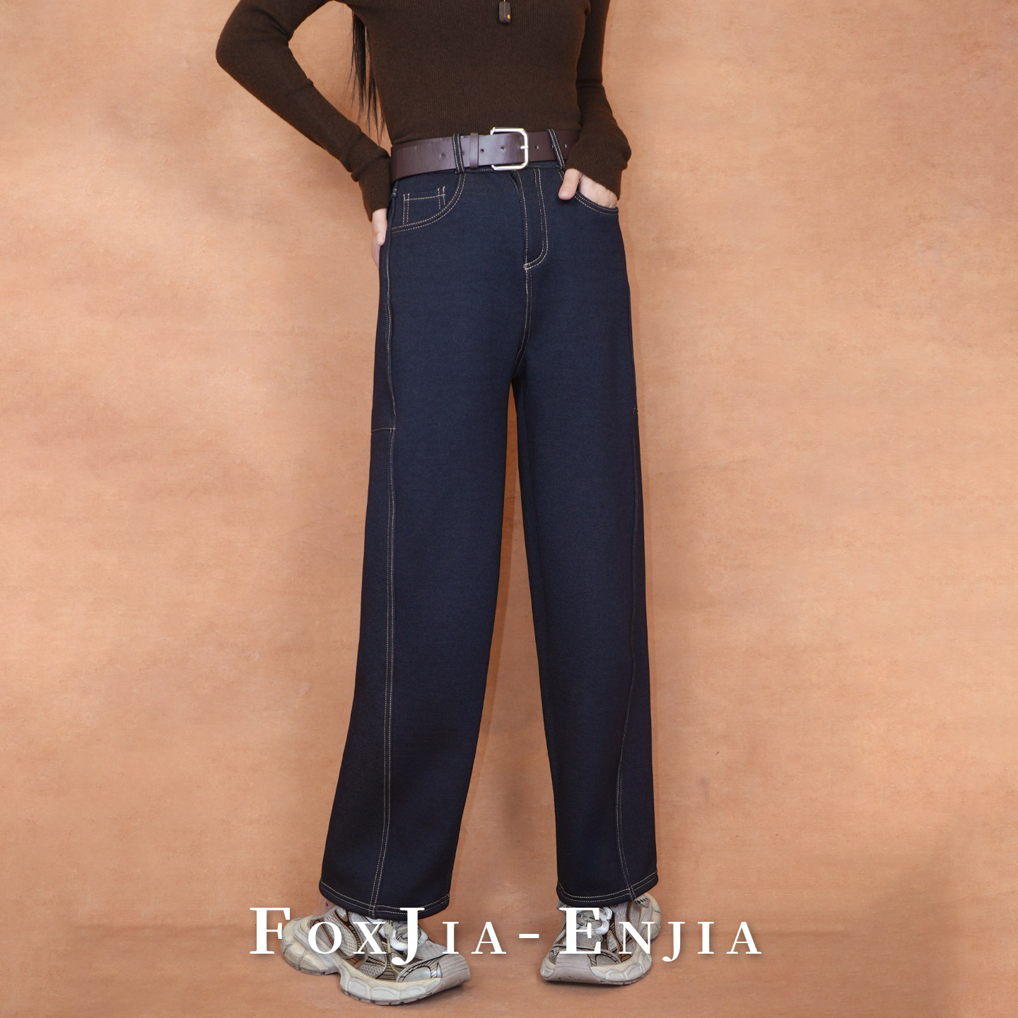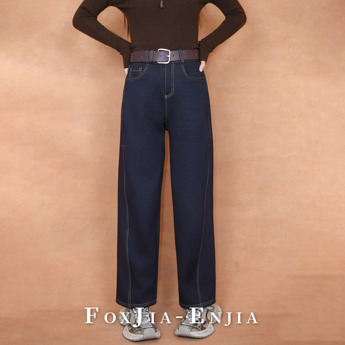 恩佳专享 保暖休闲裤 加绒牛仔裤 百搭弯刀裤 送皮带 女修身