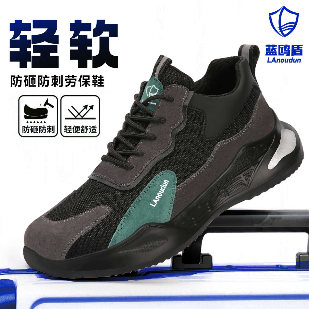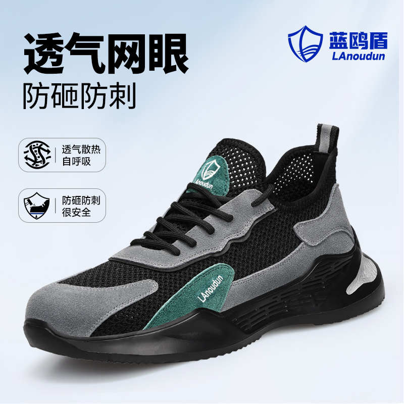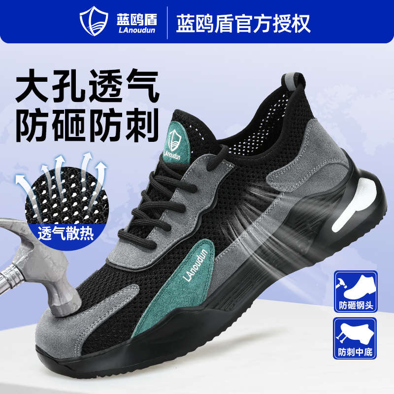 透气钢头带钢板耐磨工地工作鞋 士防砸防刺穿夏季 男款 蓝鸥盾劳保鞋