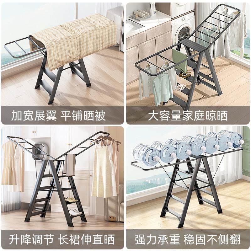 梯子晾衣架伸缩多功能晒被晒衣架子阳台室内外移动家用梯两用梯子