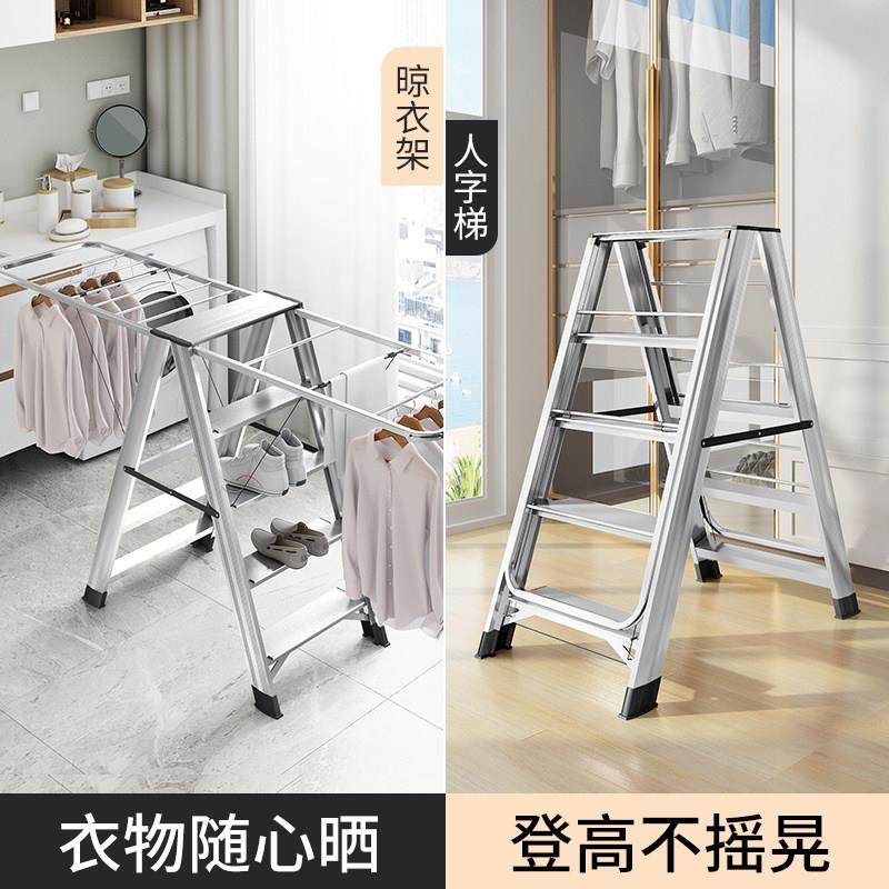 格美居梯子晾衣架两用折叠家用加厚多功能伸缩梯折叠晾衣梯人字梯