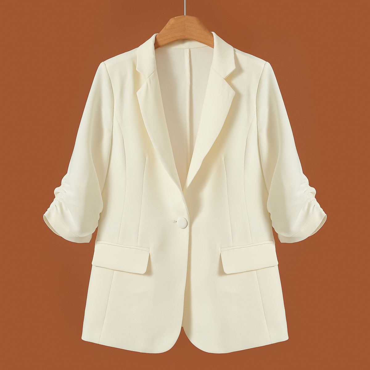 春装 幸 绍 收褶五分袖 外套897 1188 一粒扣开叉西装 71%醋酸