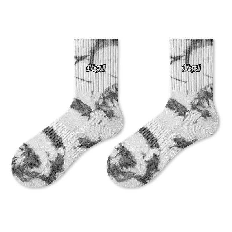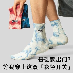 子墨袜子男款 原创刺绣复古夏加厚扎染中筒学生青少年长袜潮流ins