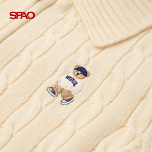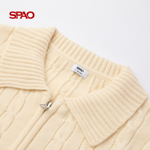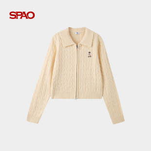 新品 2026年春季 SPAO韩国同款 女复古绞花针织开衫 WOODIE系列