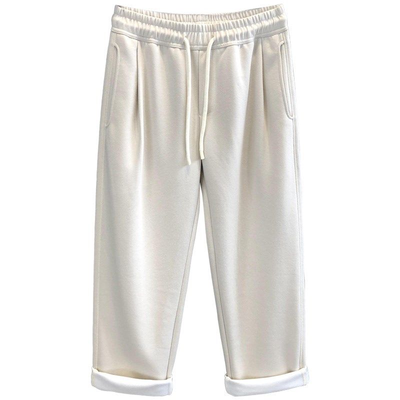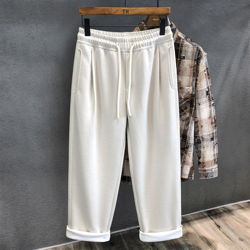 胖mm梨型身材慵懒加厚运动卫裤 女冬季 白色高腰显瘦加绒阔腿裤 大码