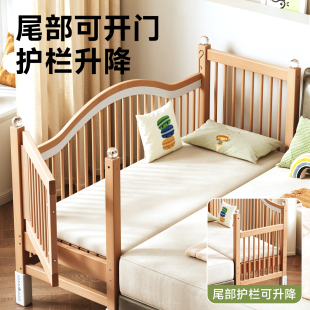 榉木儿童拼接床加宽床边大人可睡实木床定制宝宝小床带护栏婴儿床