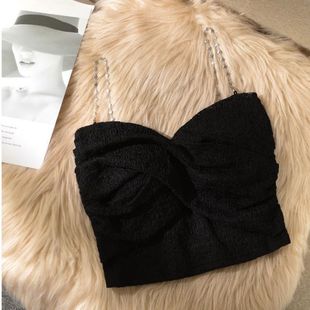 上衣 性感短款 VanessaLab 欧美风深蓝色弹力带胸垫吊带背心女夏季