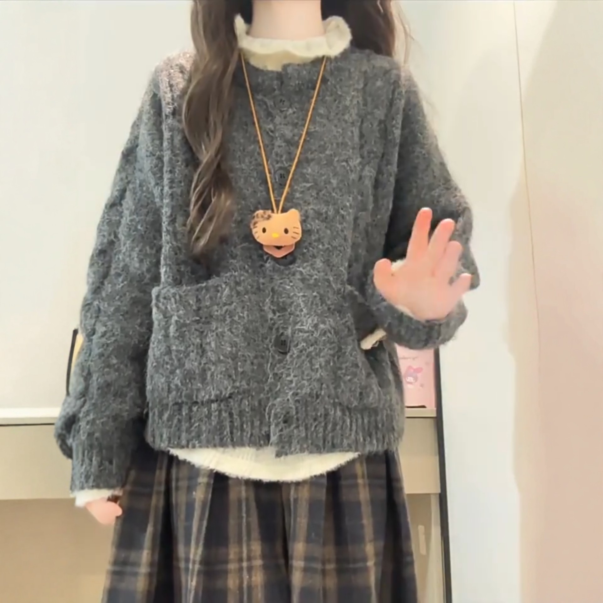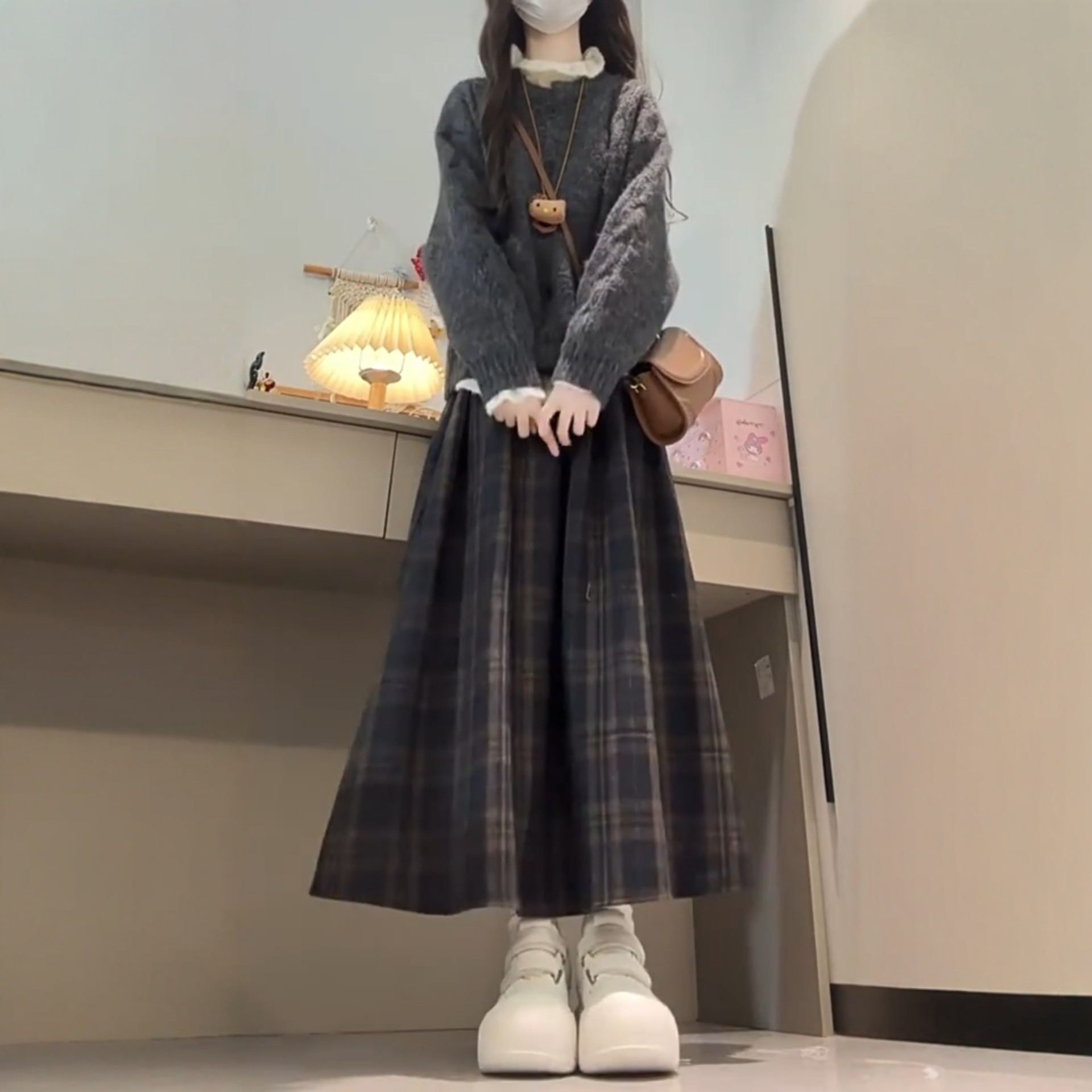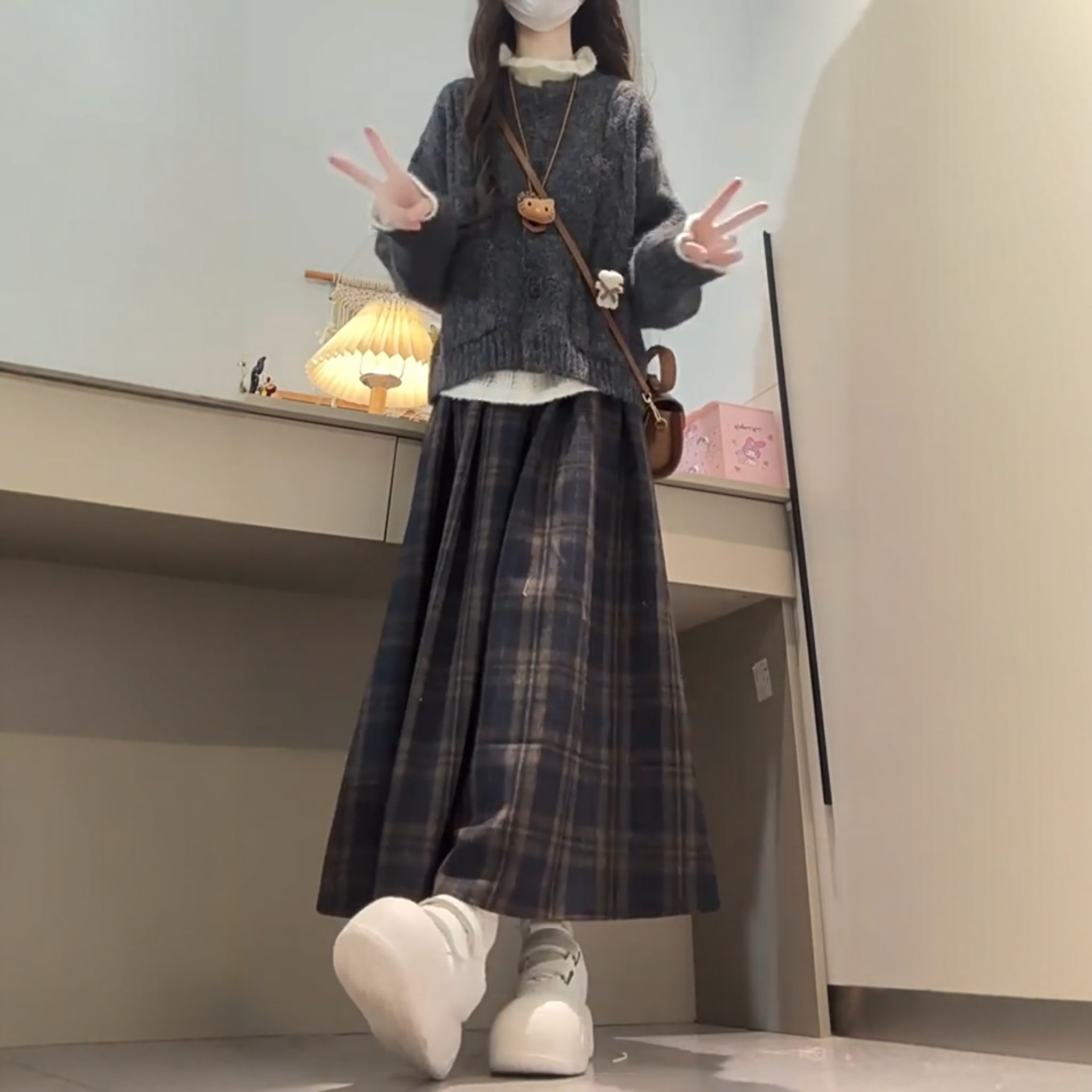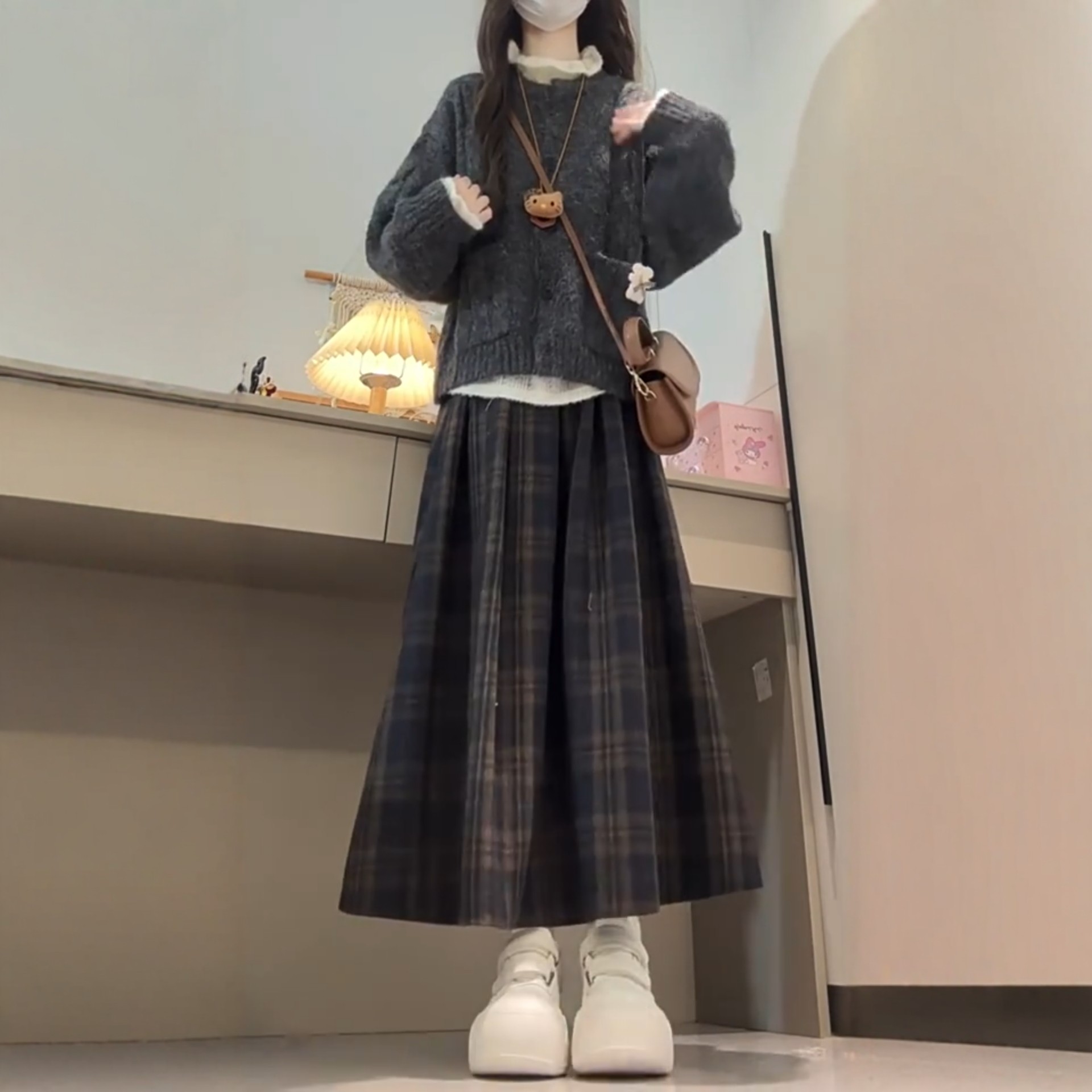 2025新款 女冬装 巨好看一整套穿搭 学院风针织毛衣外套裙子套装 韩式