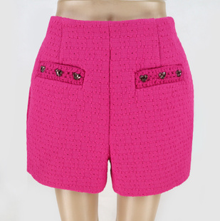 饰甜美玫红女春秋显腿长外穿短裤 毛织拼接亚克力装 917 正品 JH风
