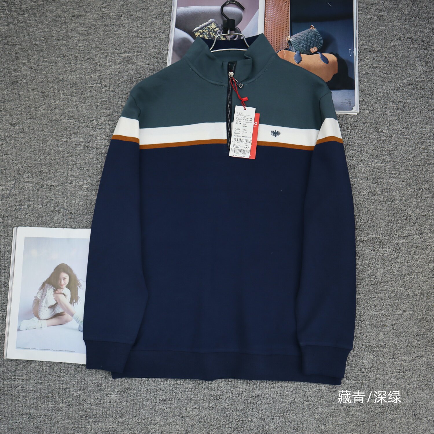 上衣休闲长袖 立领半拉链衫 宽松运动 纯棉男式 春装
