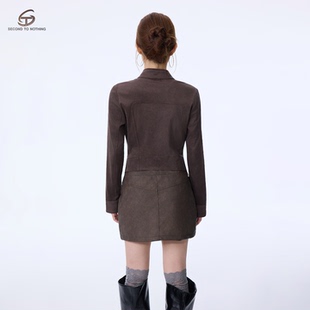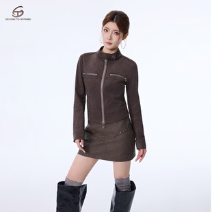 立领机车飞行夹克上衣女 外套新款 STN复古收腰显瘦工装 麂皮短款