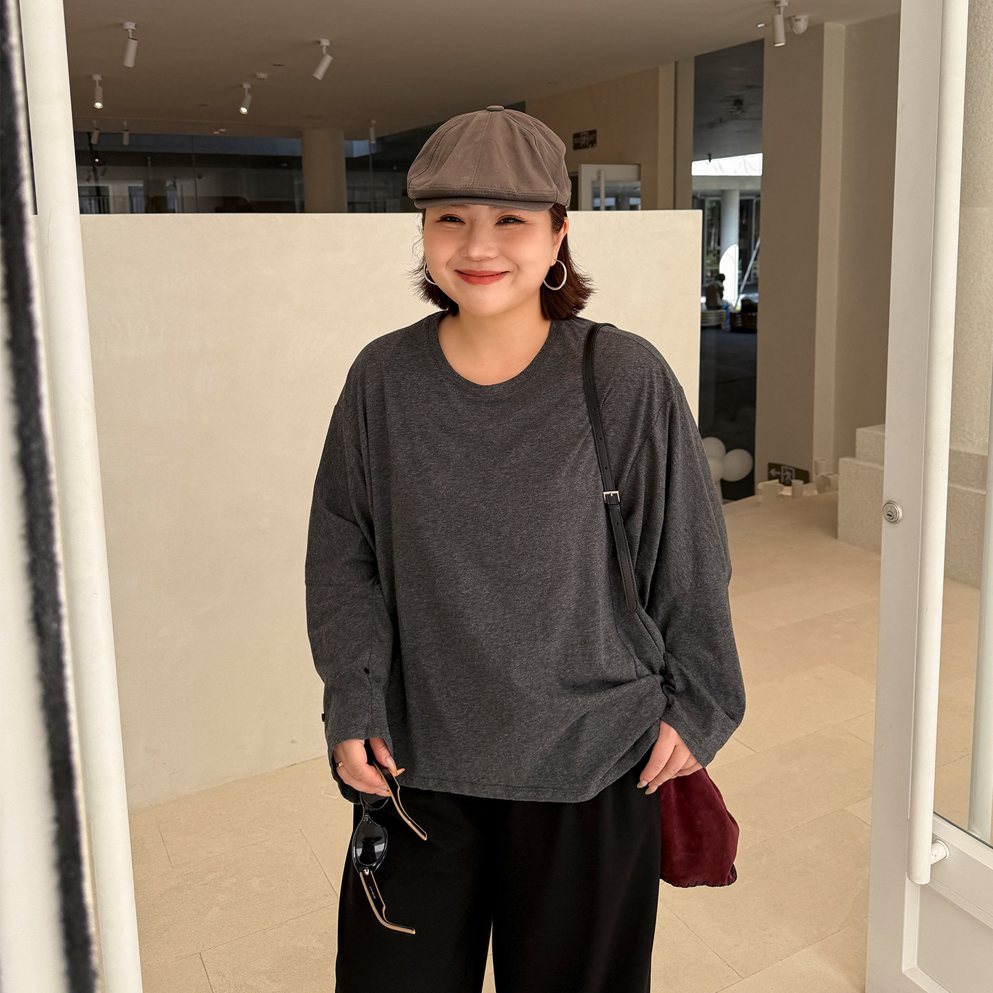 春季 胖mm纯棉蝙蝠袖 女装 T恤木子理想大码 200斤舒适透气上衣 长袖