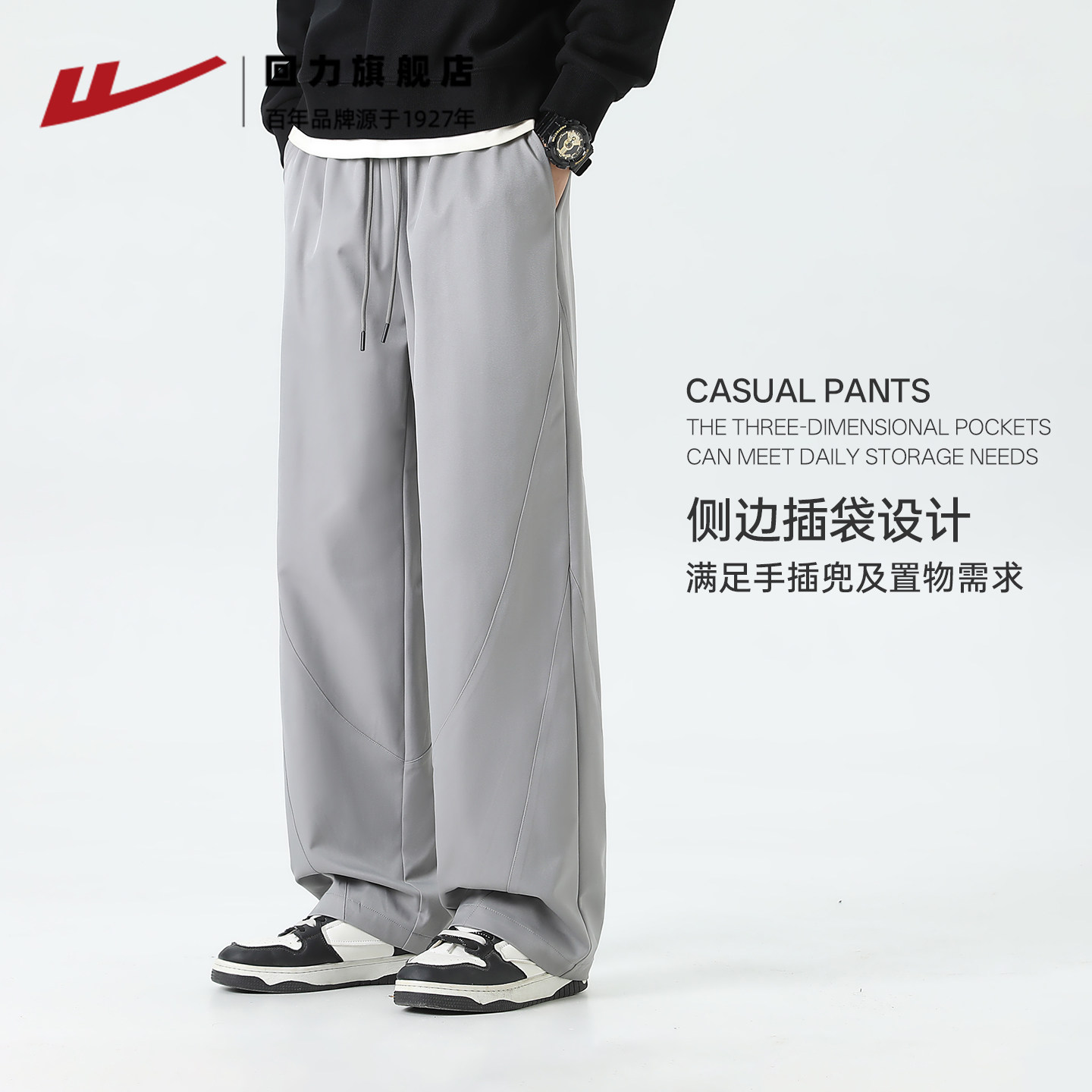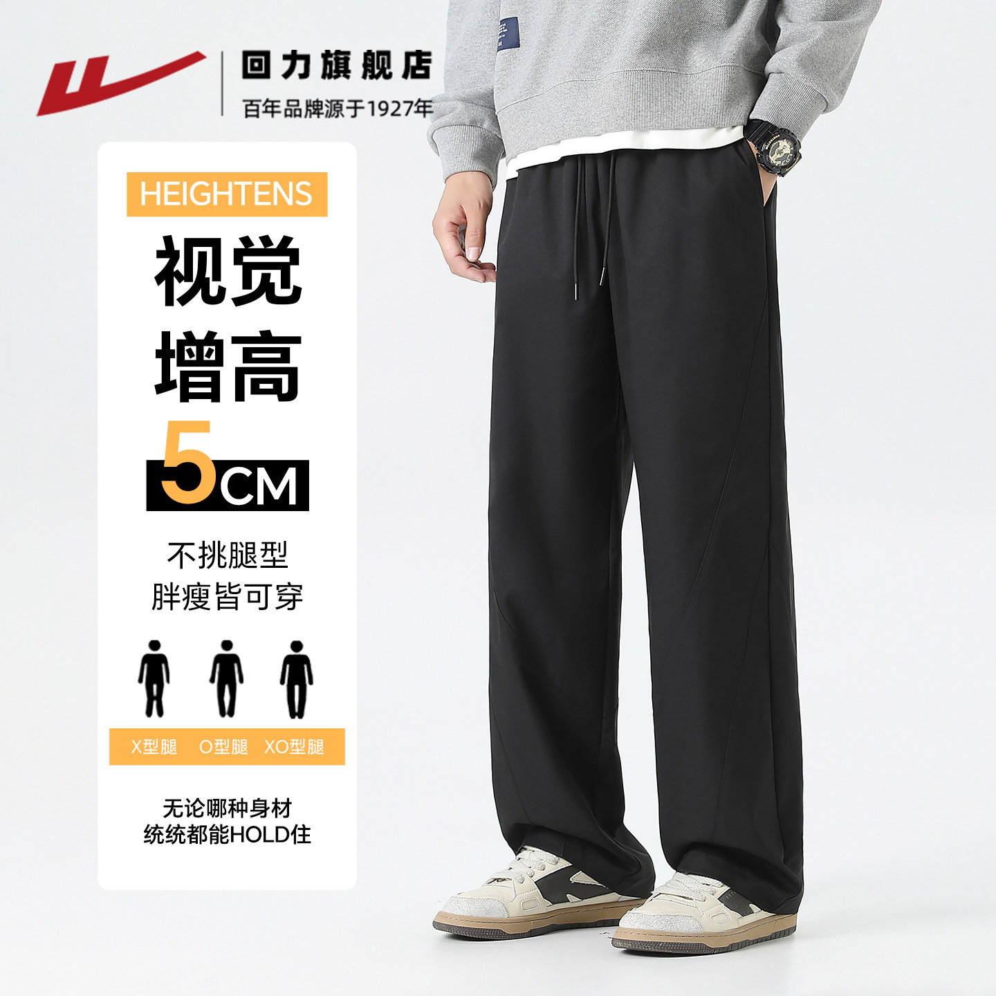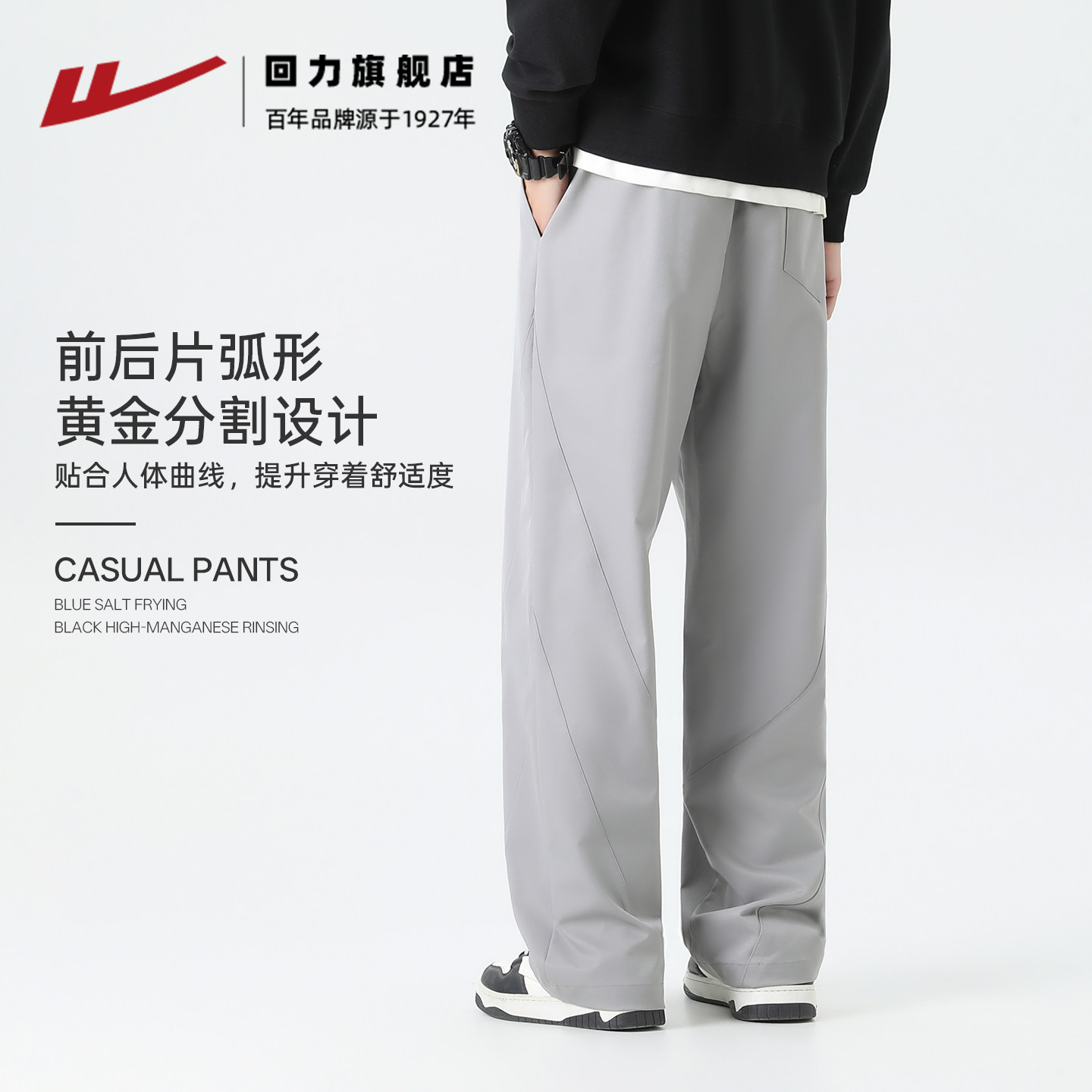 子男款 休闲裤 2026新款 宽松垂感运动裤 男 青少年卫裤 回力弯刀直筒裤
