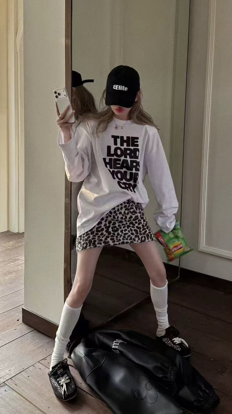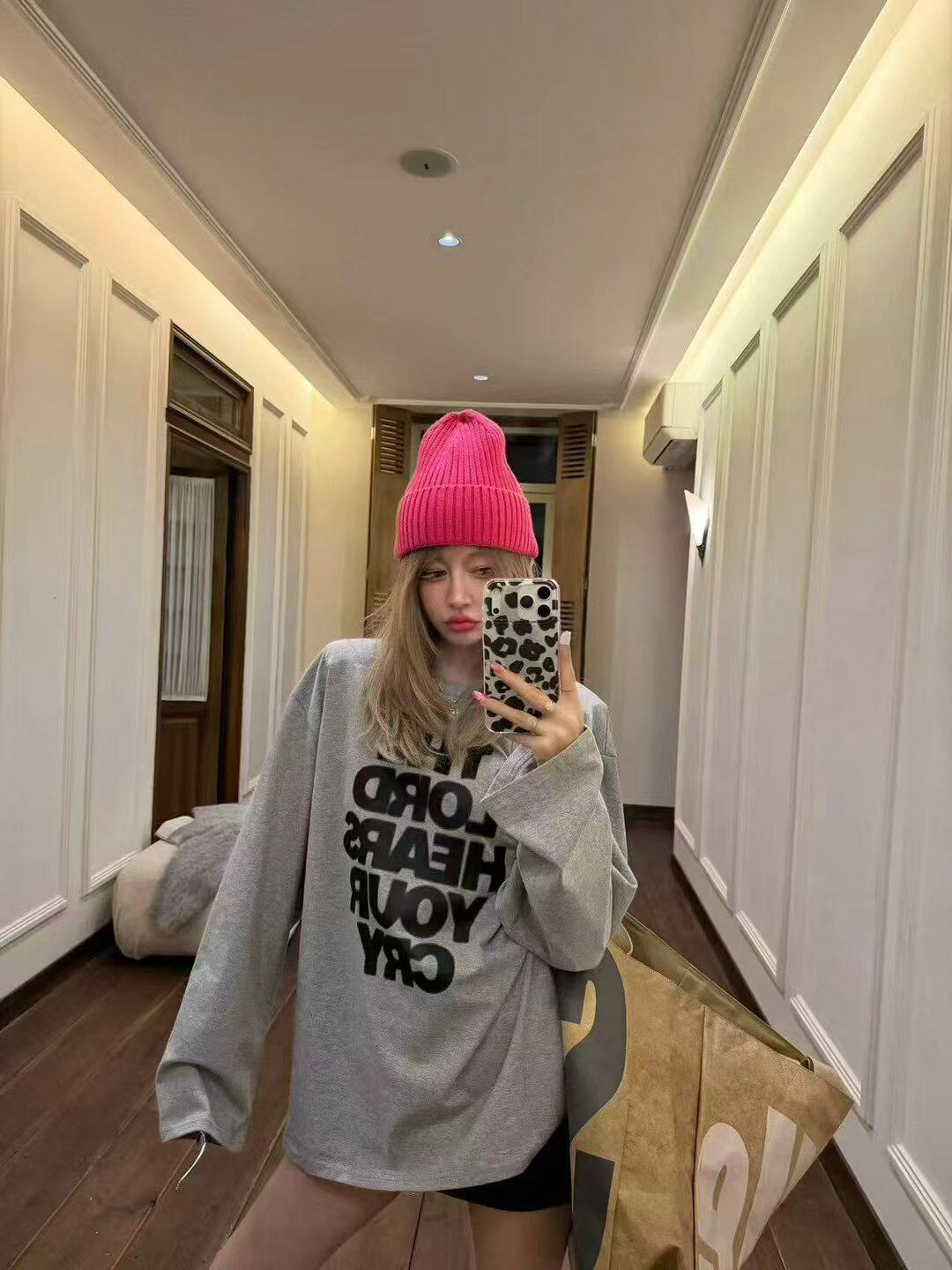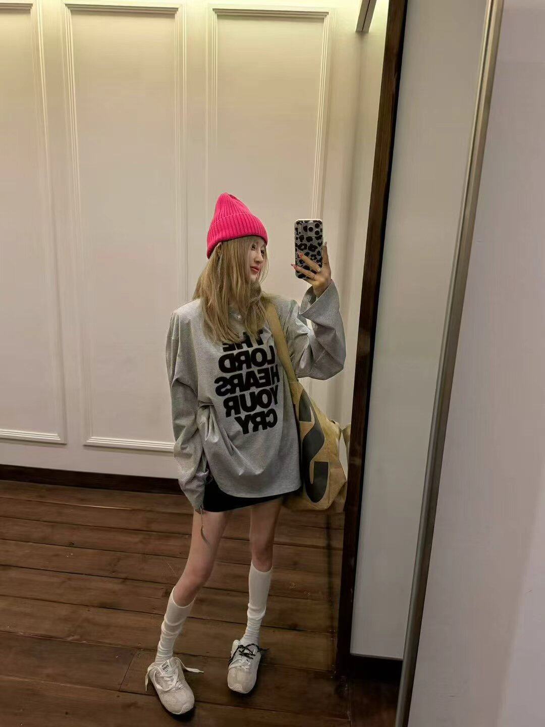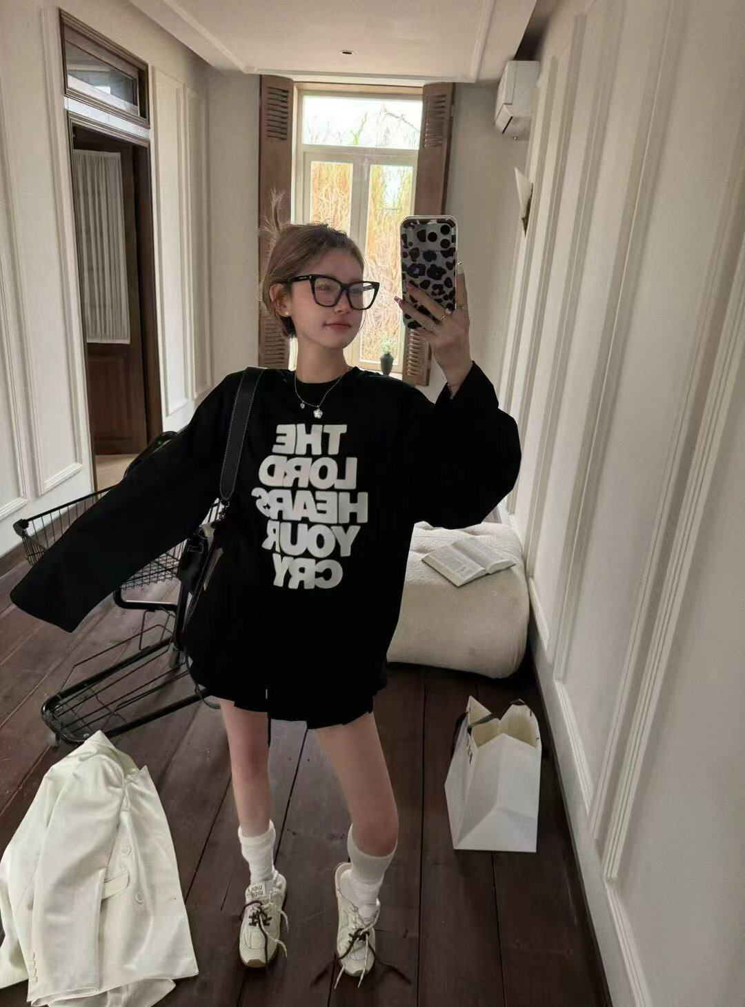 2026春季 T恤女宽松显瘦打底衫 韩版 百搭圆领字母长袖 时尚 Miss家