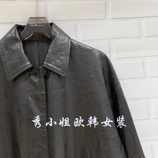 中长款 欧洲站2026春季 百搭翻领长袖 时尚 皮衣外套女上衣潮638 新款