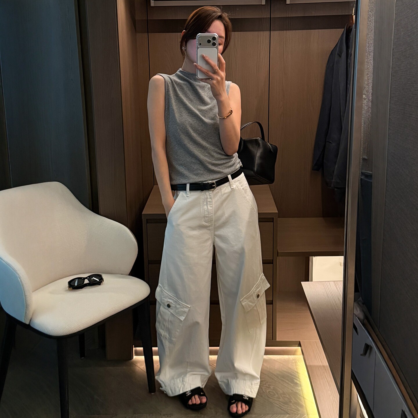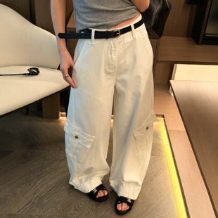 阔腿裤 直筒休闲裤 女欧洲站2026春装 欧货女装 潮 新款 双口袋拖地工装
