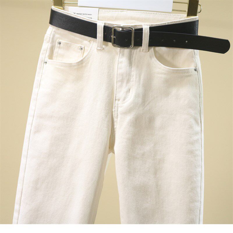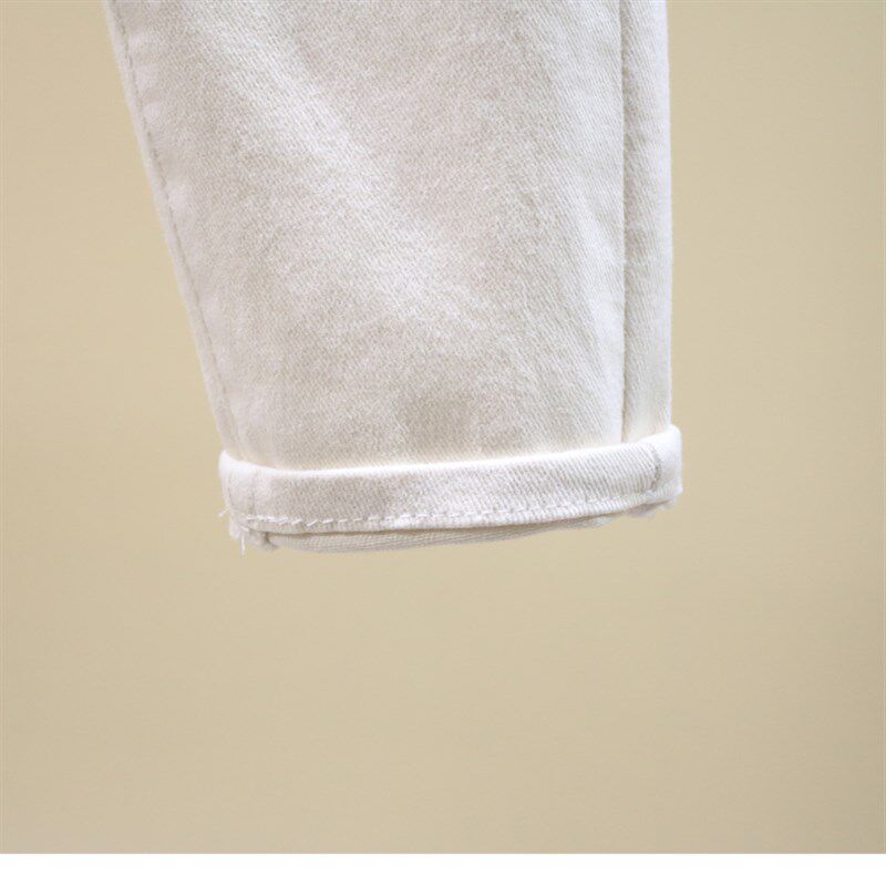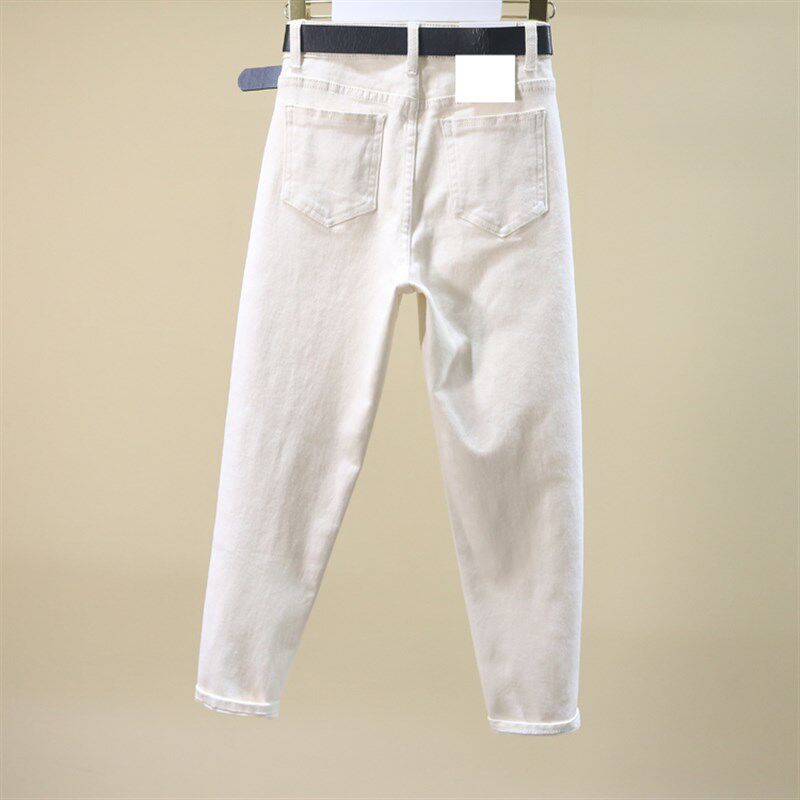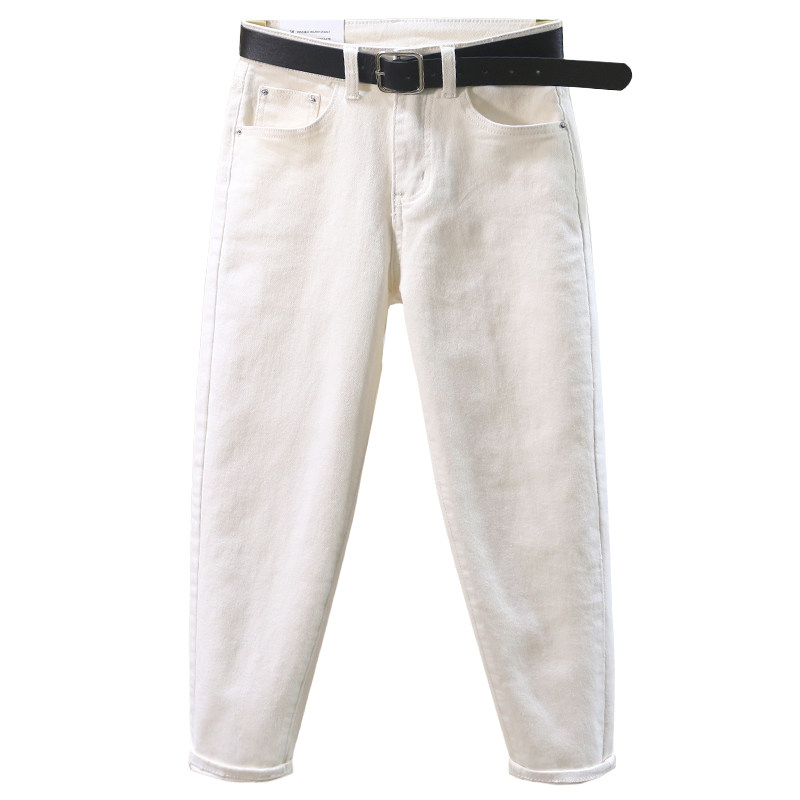 萝卜裤 米白色牛仔裤 韩版 高腰弹力休闲哈伦裤 子 女宽松2021春夏新款