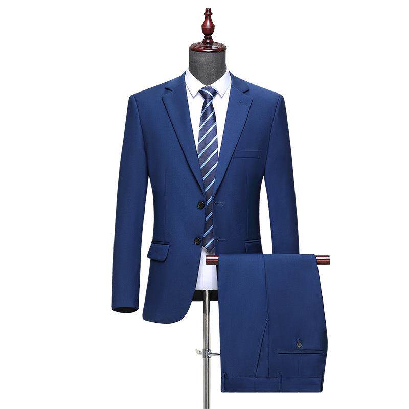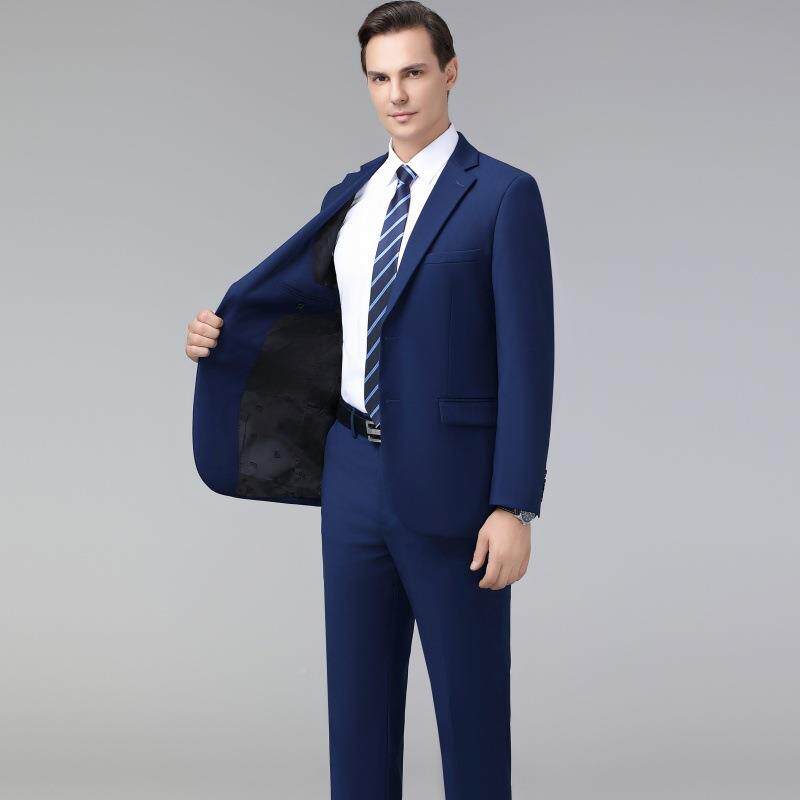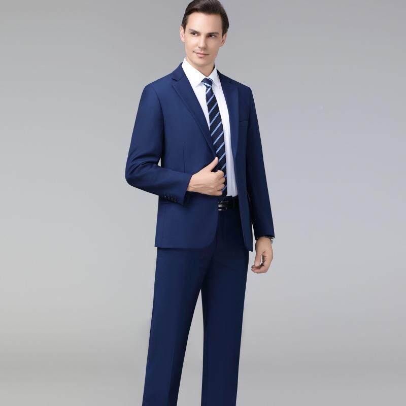 西宴会结婚礼服男装 商务装 男免烫羊毛中年装 宝蓝色外西服套813装