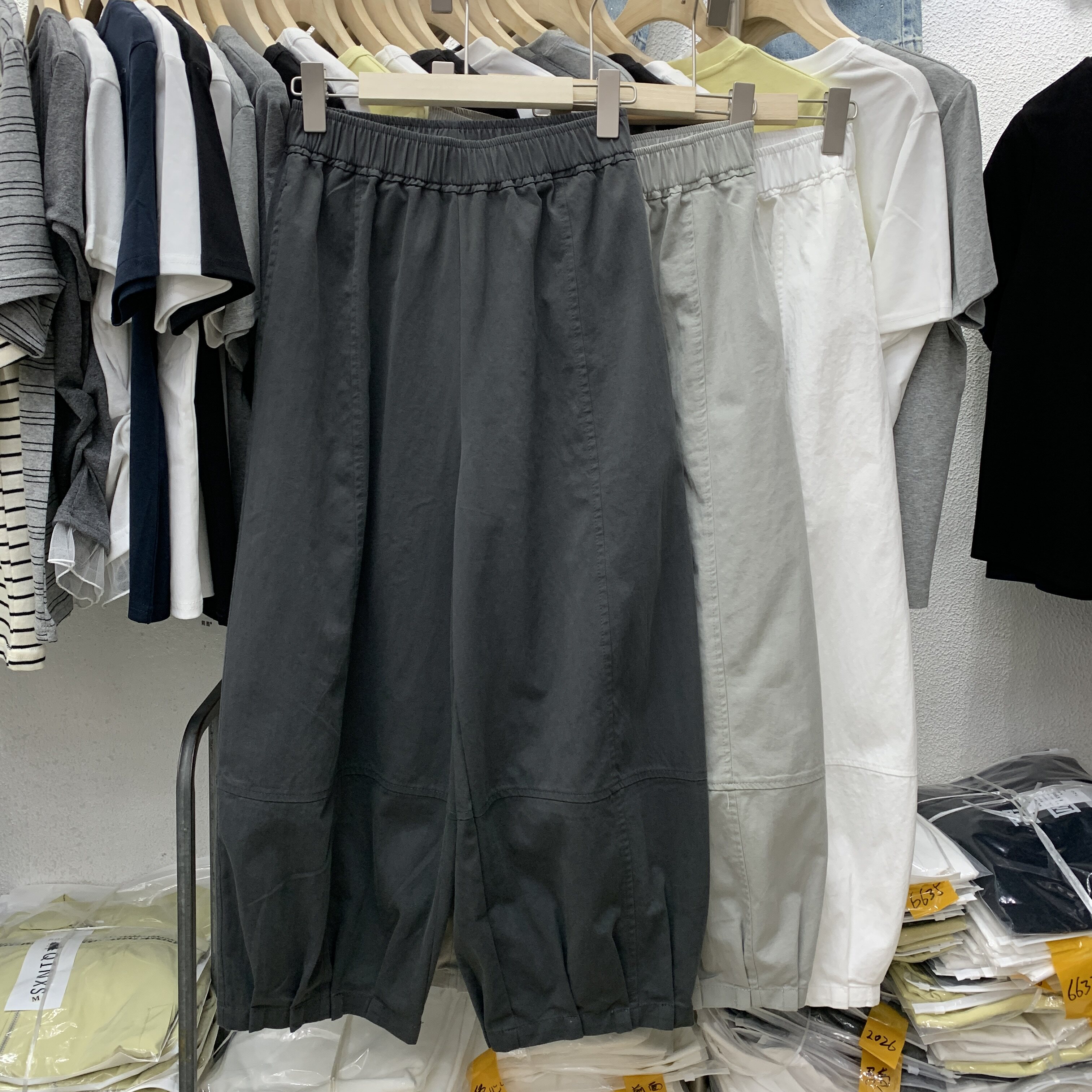 枢纽线2606欧货2026春季 韩系松弛感温柔宽松显瘦松紧腰九分气球裤