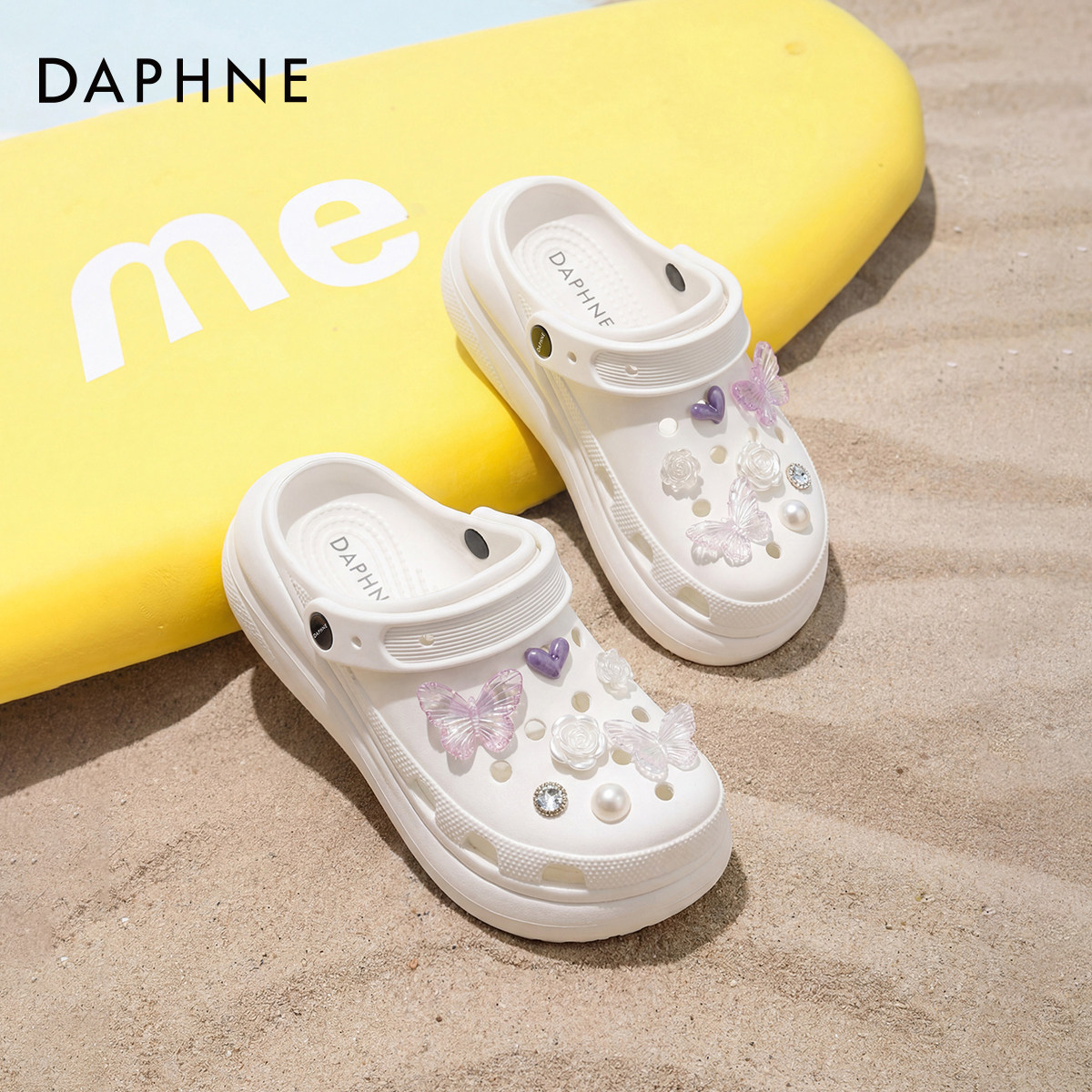 饰增高软底凉拖鞋 蝴蝶装 可爱风 女夏外穿2026新款 达芙妮厚底洞洞鞋