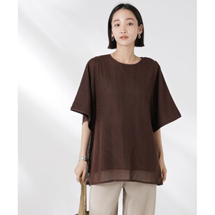 日本直邮nano・universe 6735124323 女士网纱拼接雪纺罩衫