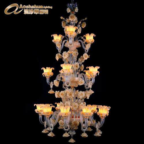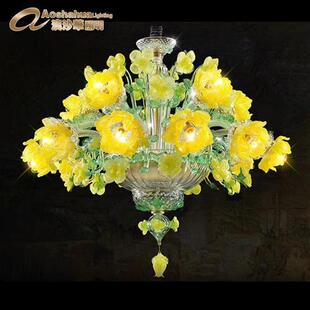酒店会所大堂琉璃吊灯艺术水晶玻璃花吊灯酒店彩色玛瑙吊灯