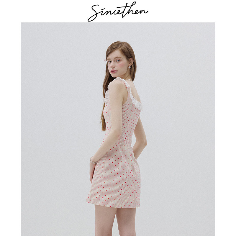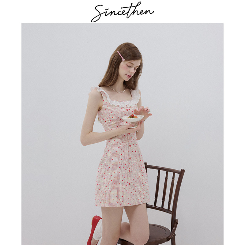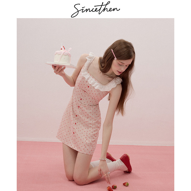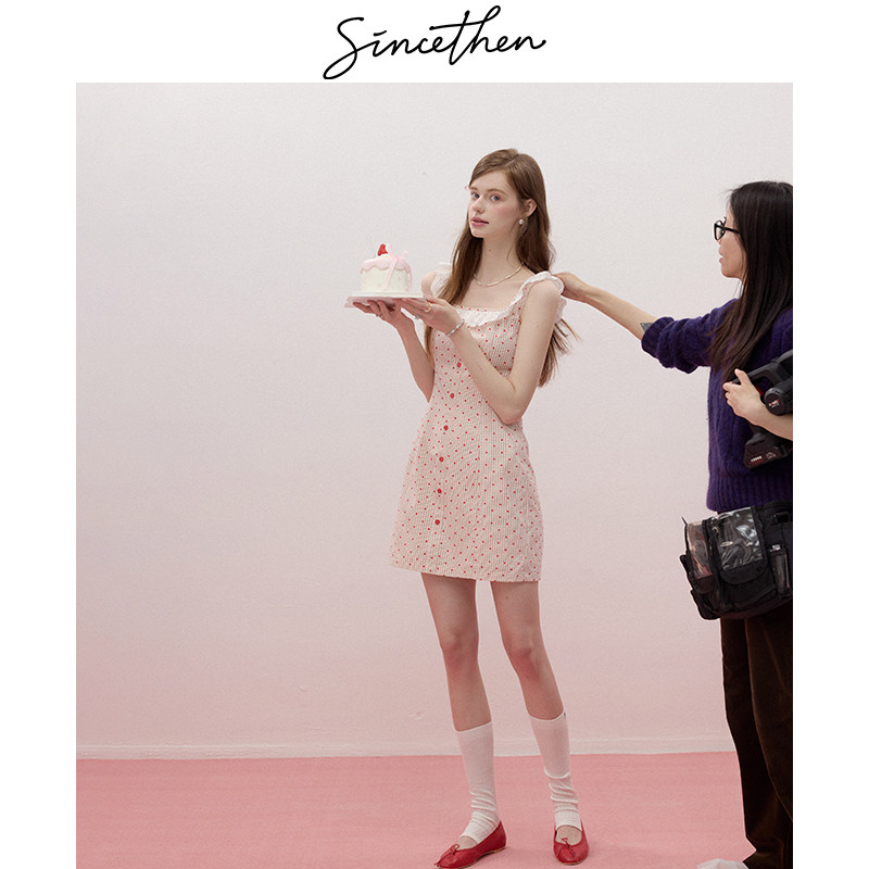 sincethen法式 风吊带裙粉色连衣裙甜美风短裙波点裙子A字裙女夏季