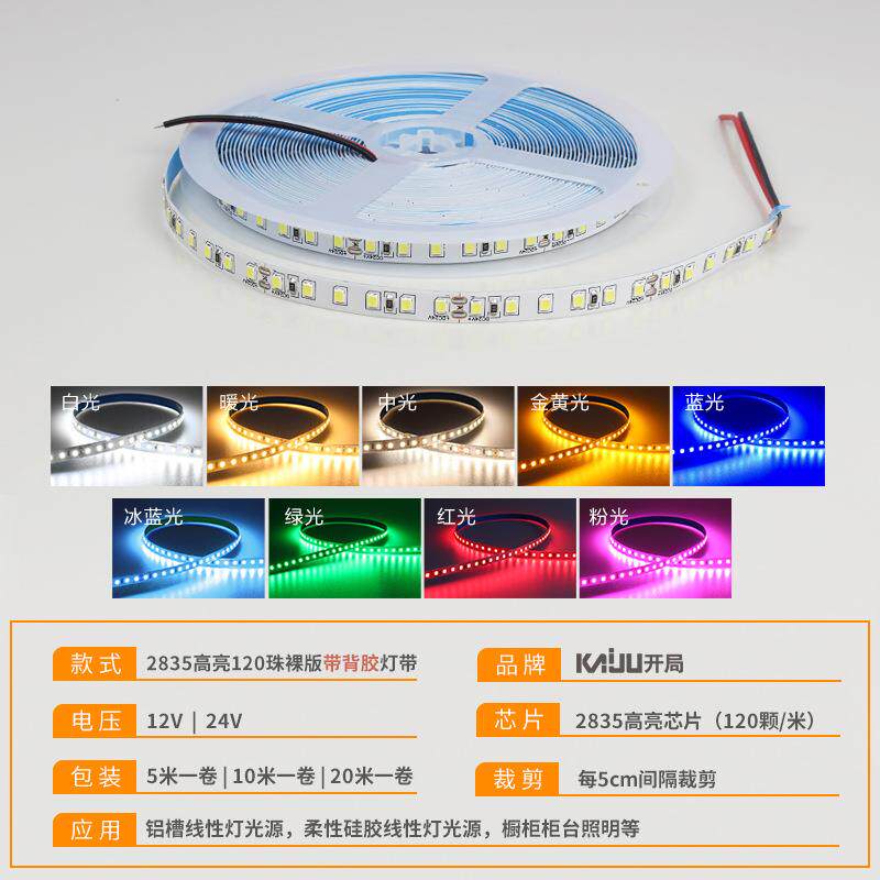 24低压裸灯板led灯带自粘软贴KJ HD24槽20米无压降12V三色V灯条线