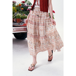 新款 半身裙女2026夏季 民族风度假裙子 口袋波西米亚风中长款 妖精