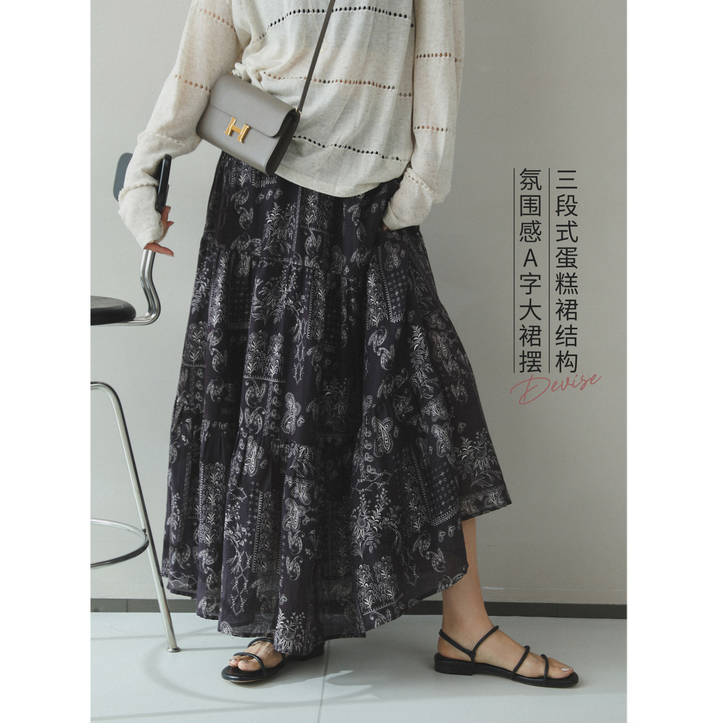 佩斯利腰果花松紧腰A字伞裙半身蛋糕摆裙 嬉皮浪漫 苹果 生活家