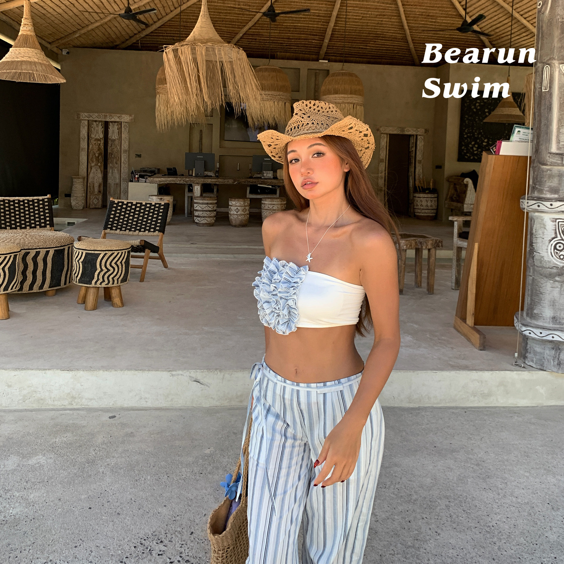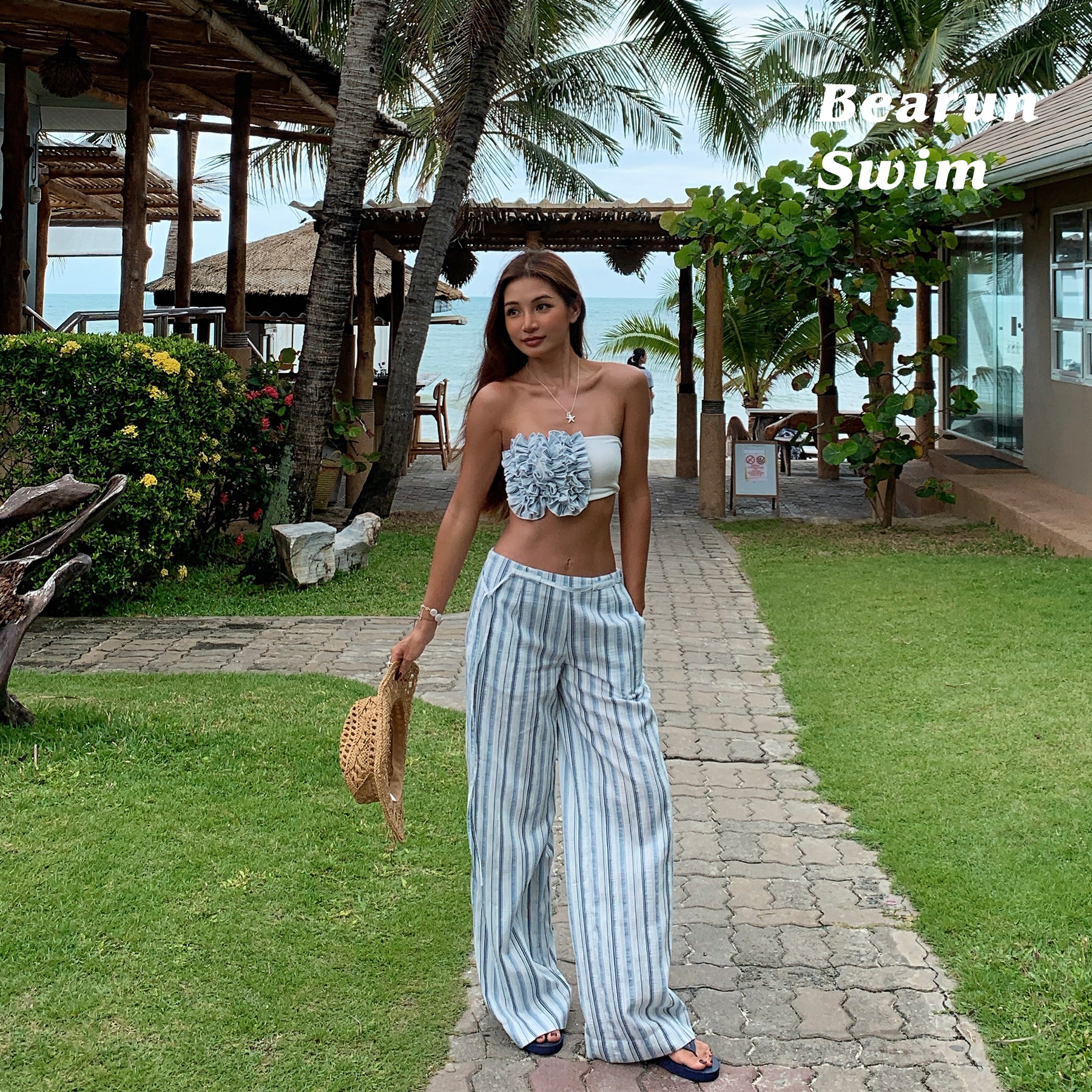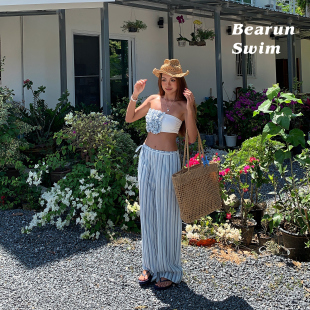 女2026设计感抹胸背心上衣裤 度假风条纹套装 子两件套 SWIM BEARUN