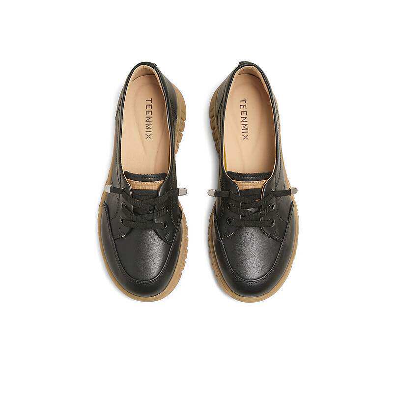子2025春新款 女休闲鞋 CMA13AA5 软底复古单鞋 天美意厚底英伦小皮鞋
