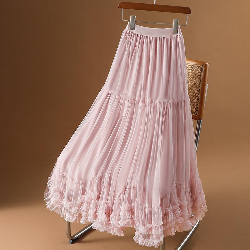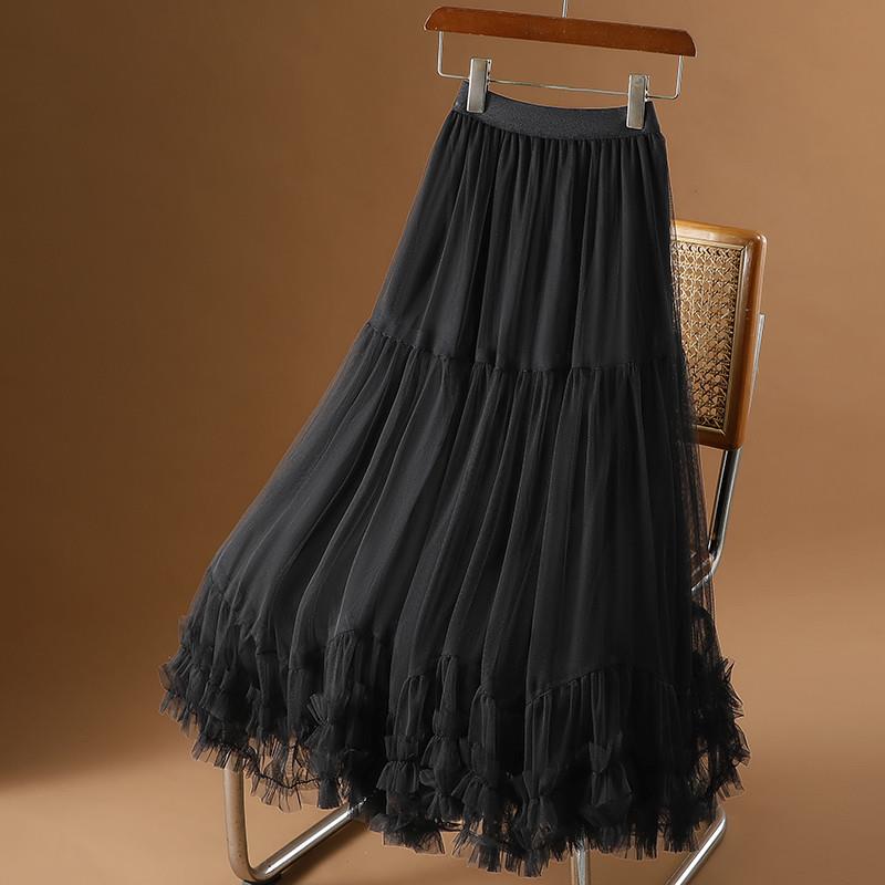 高端网纱半身裙女秋冬公主蓬蓬裙仙女纱裙木耳边大摆裙子高腰长裙