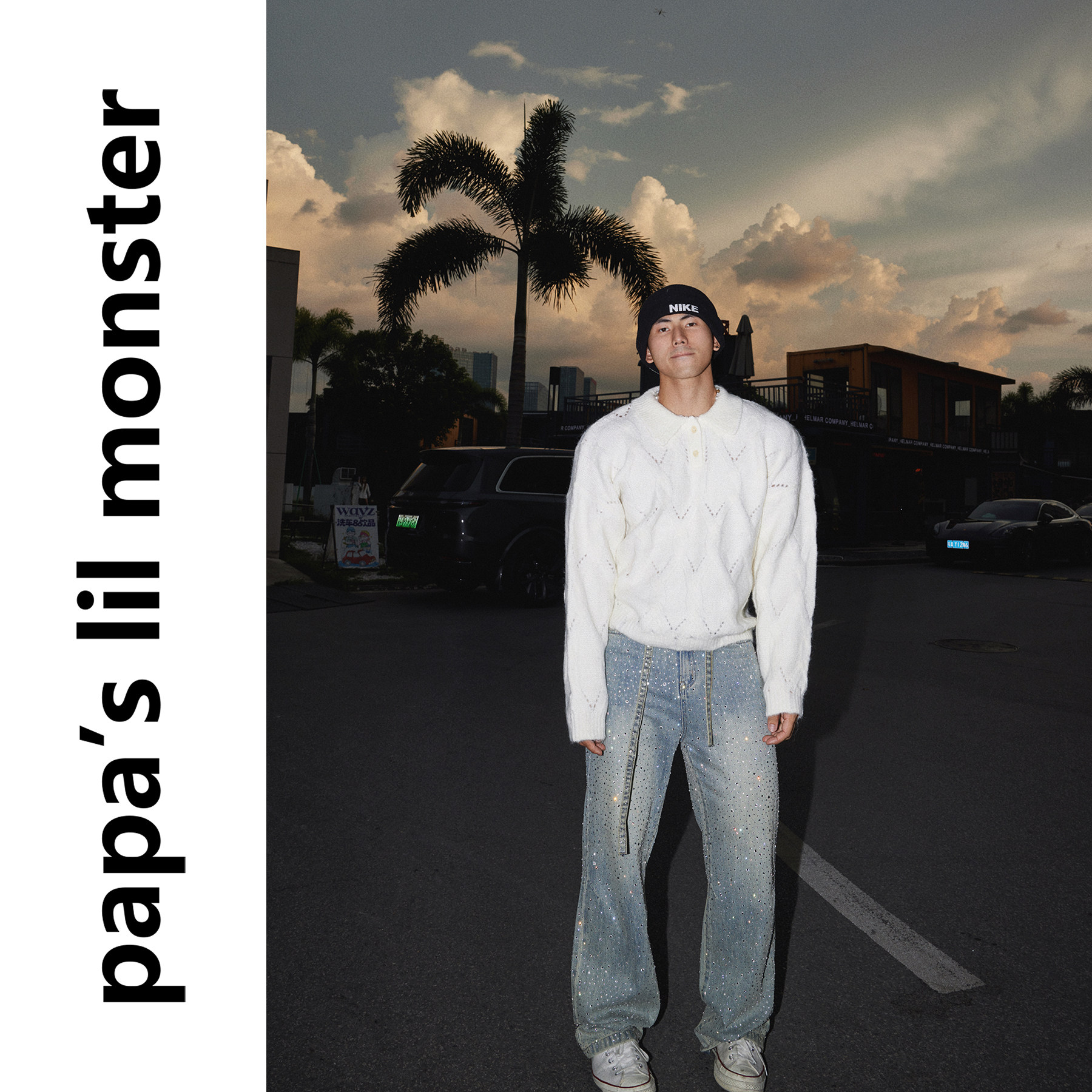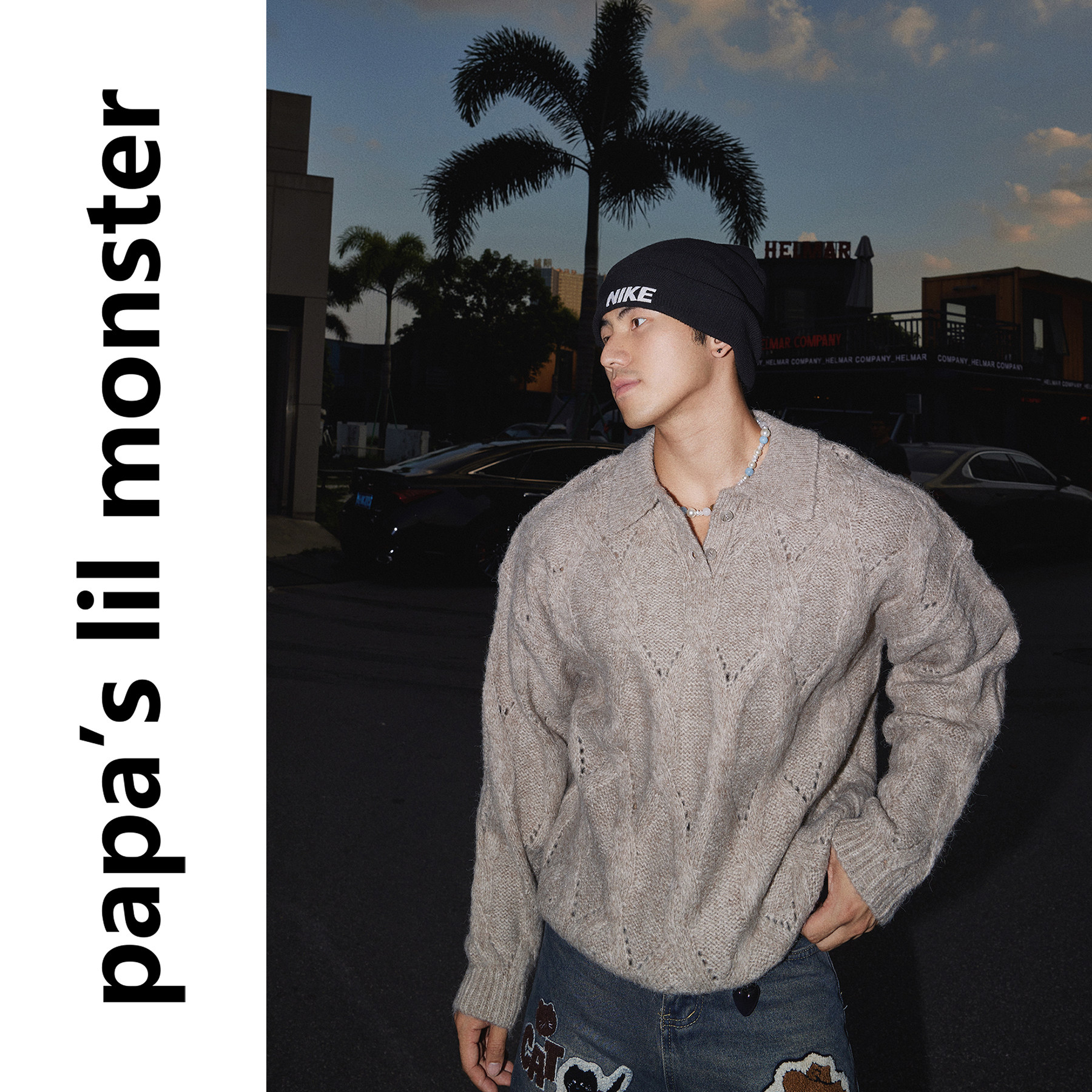 菱格麻花编制纹理POLO毛衣 美式 PAPASLILMONSTER 新钱学院