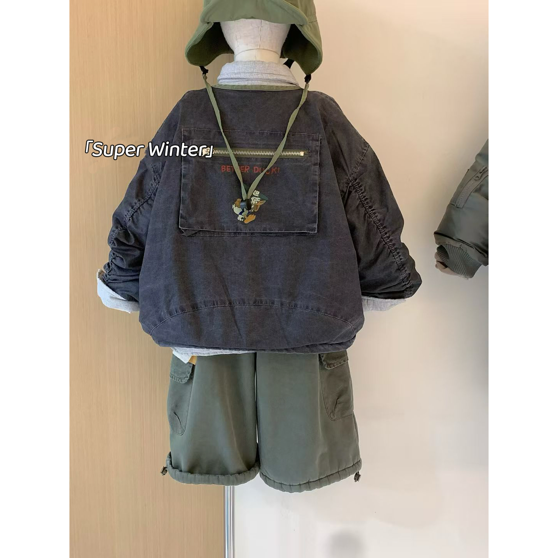 洋气卡通设计夹棉外套上衣百搭保暖夹克休闲套装 韩版 新款 男童冬季