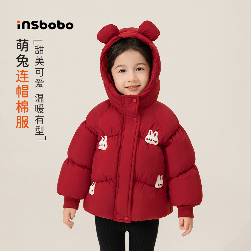 加厚红色周岁棉衣 新款 女童棉服红色外套冬装 宝宝棉袄衣服儿童冬季