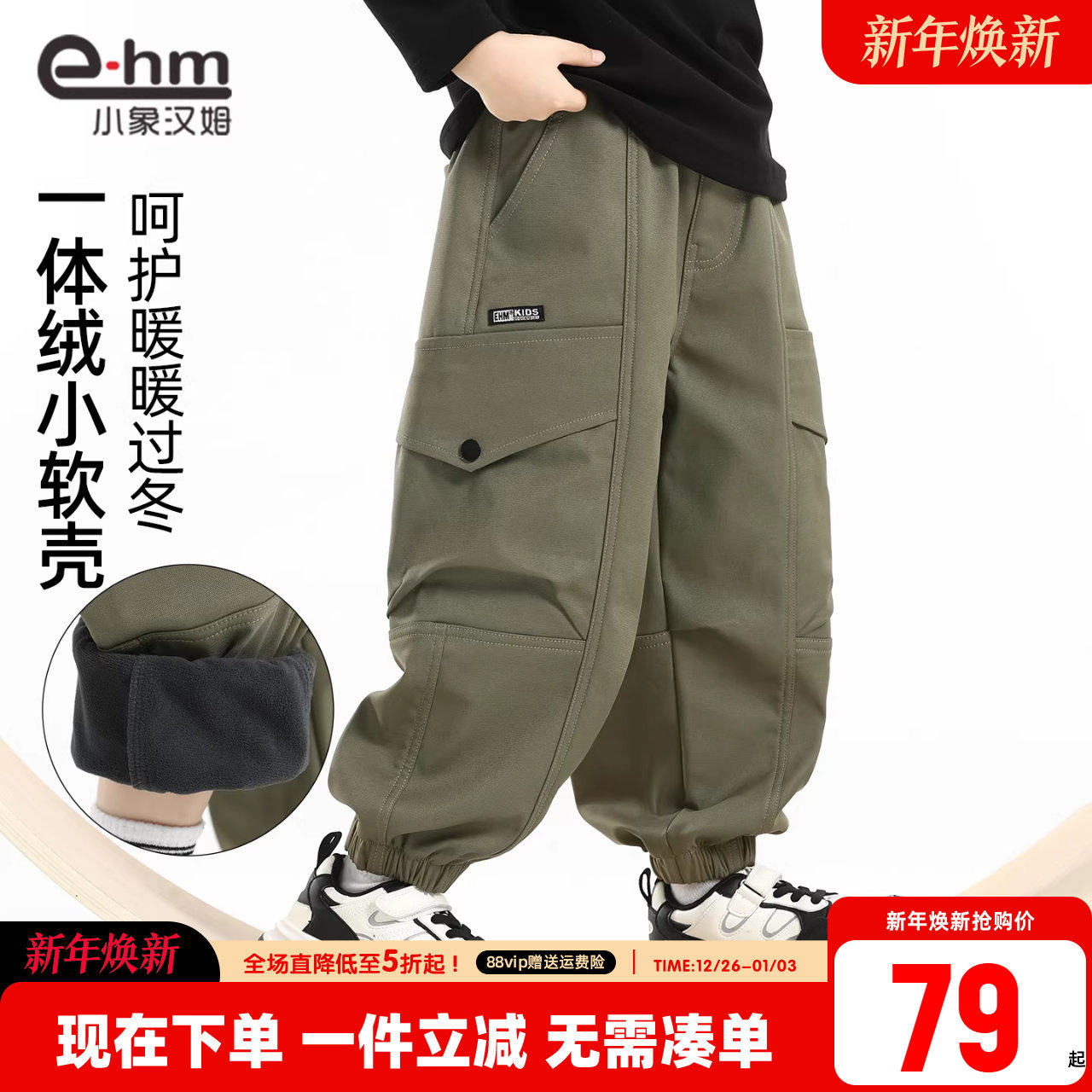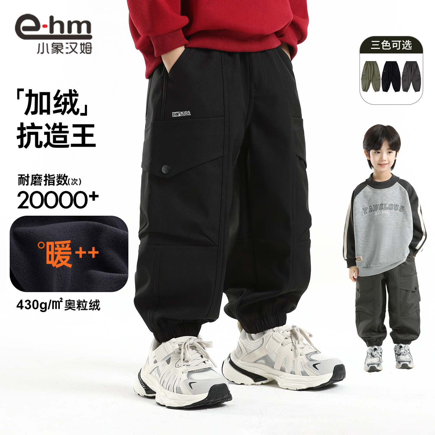 男童加绒裤 保暖裤 子儿童软壳休闲长裤 新款 子 2025冬装 小象汉姆童装