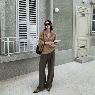 女秋冬 裤 垂感黑色加绒上班工作高腰显瘦职业直筒正装 小个子西装