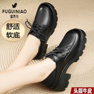 女厚底软底妈妈鞋 富贵鸟女鞋 真皮透气黑色休闲小皮鞋 秋季 2025新款