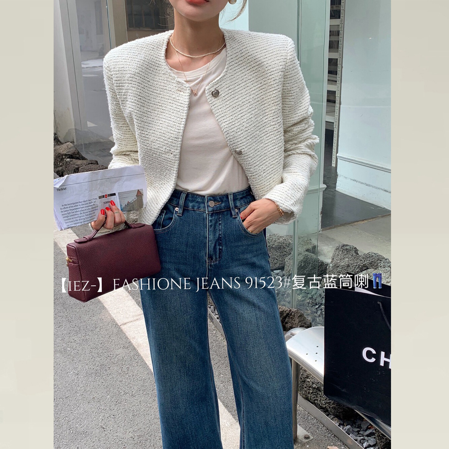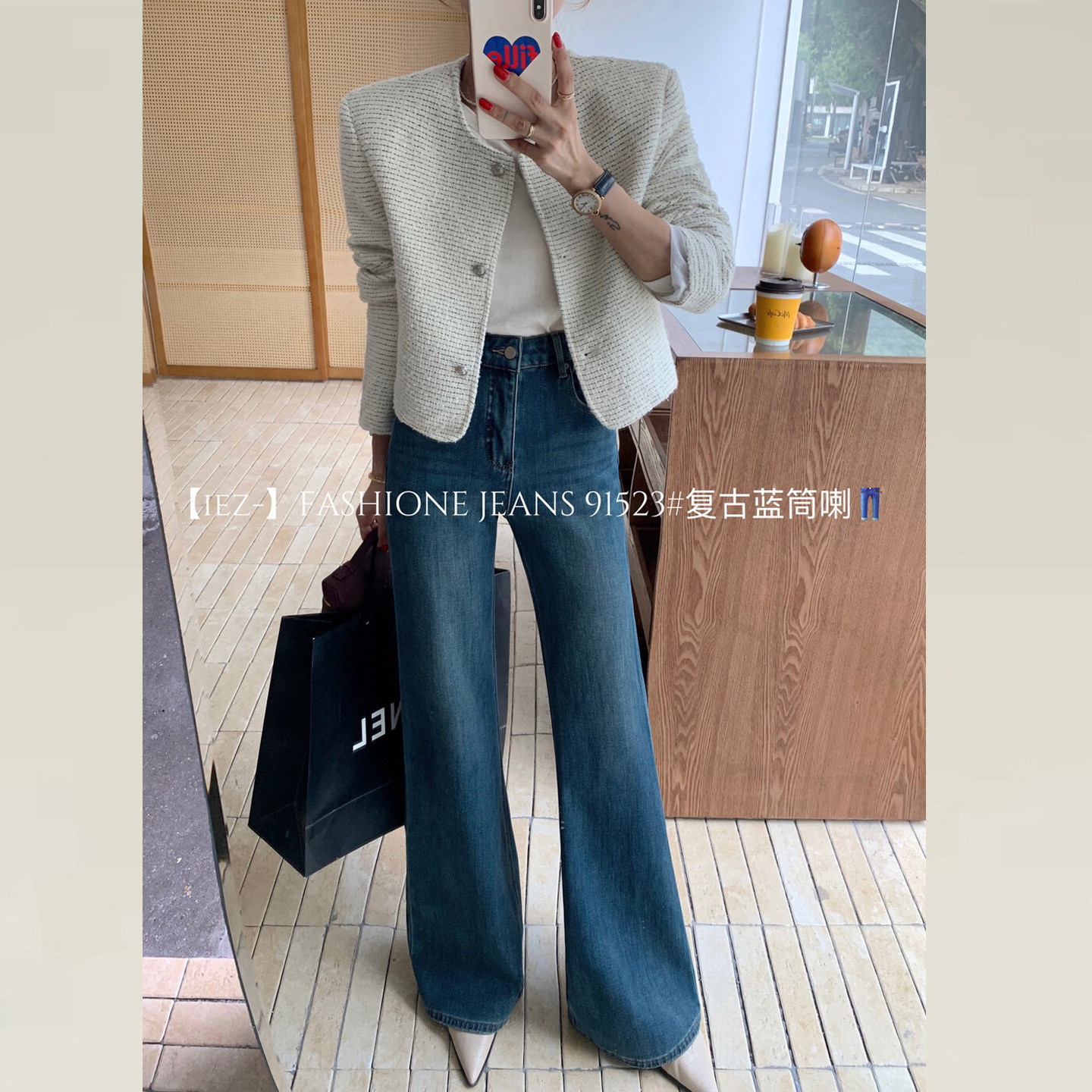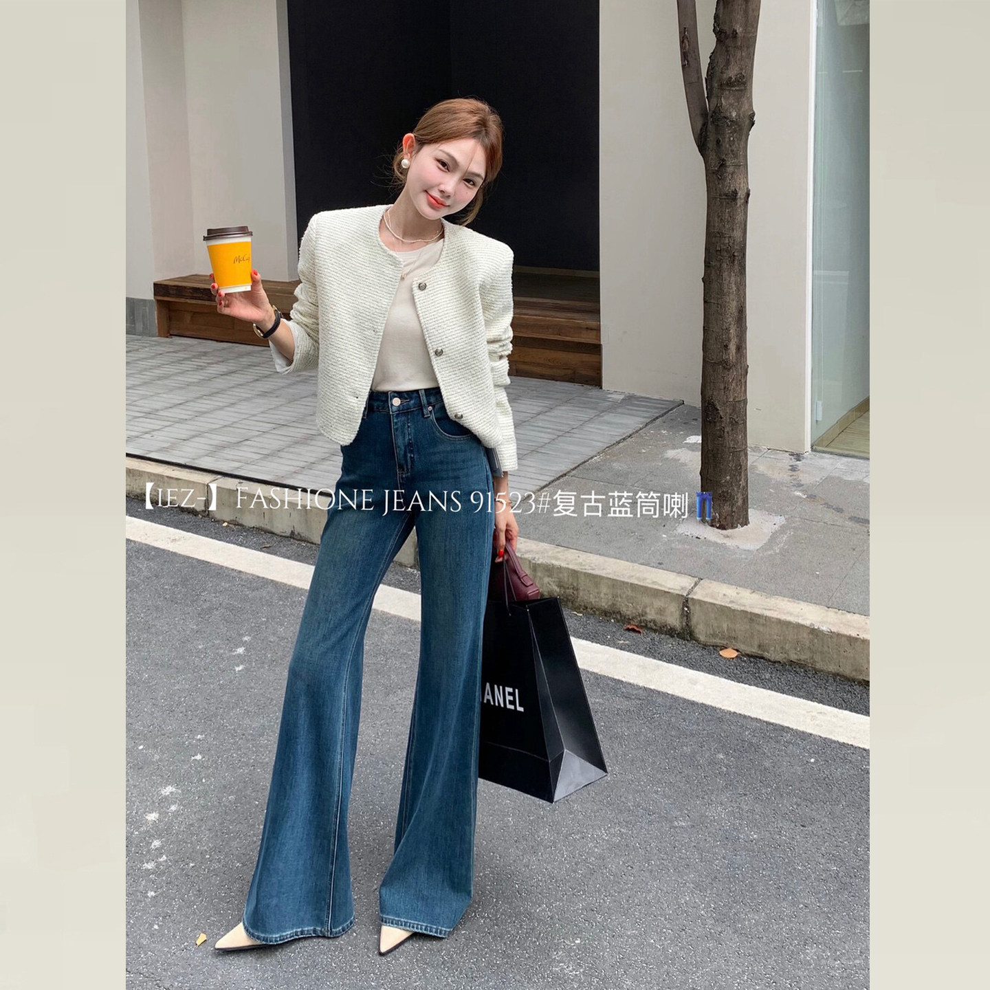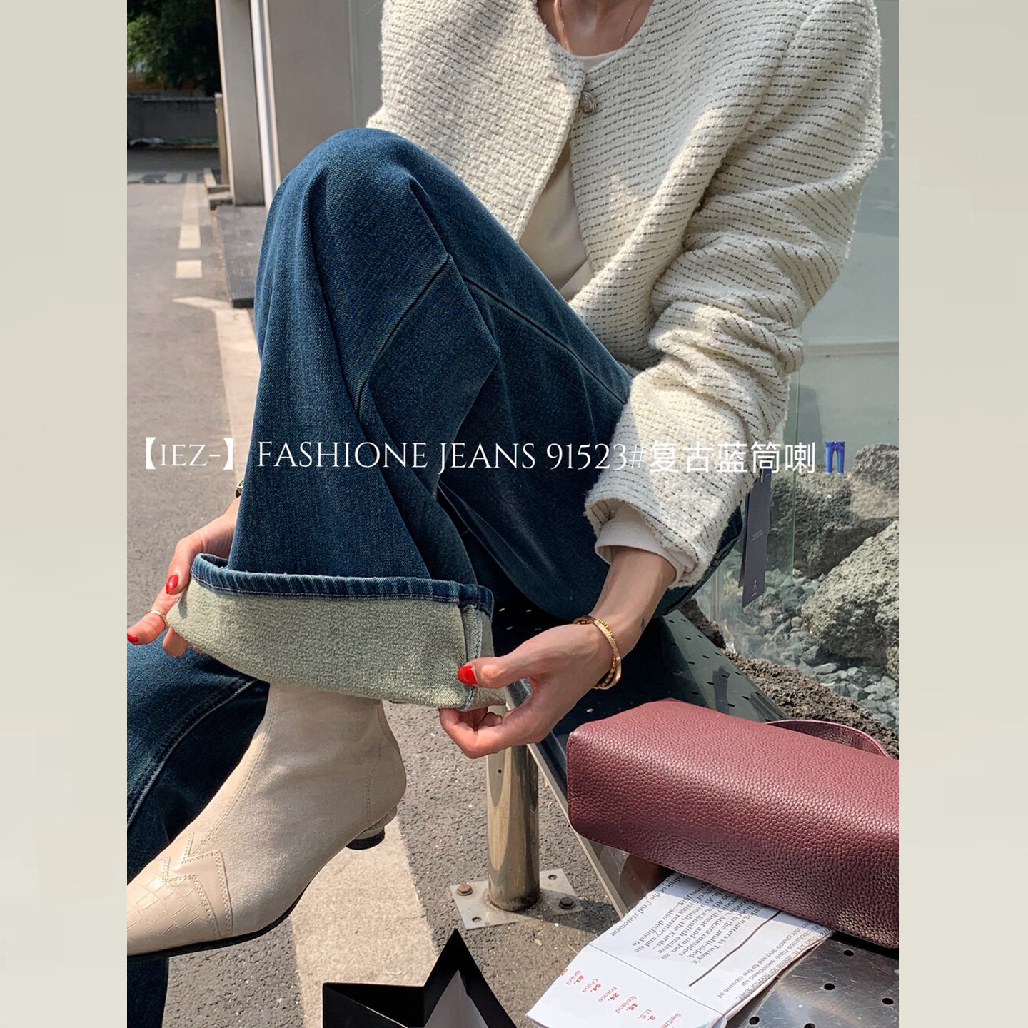 iez不贴腿微喇牛仔裤 2025秋冬加绒高腰显瘦后袋M字绣花百搭筒喇裤