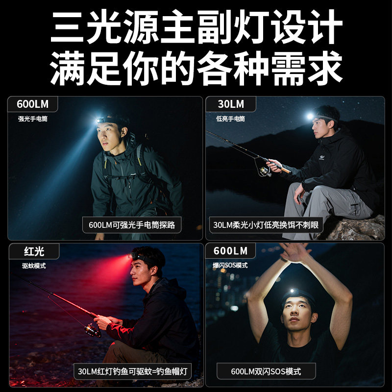 头灯强光充电式 长续航感应夜钓鱼专用户外夜爬登山 超亮小型头戴式